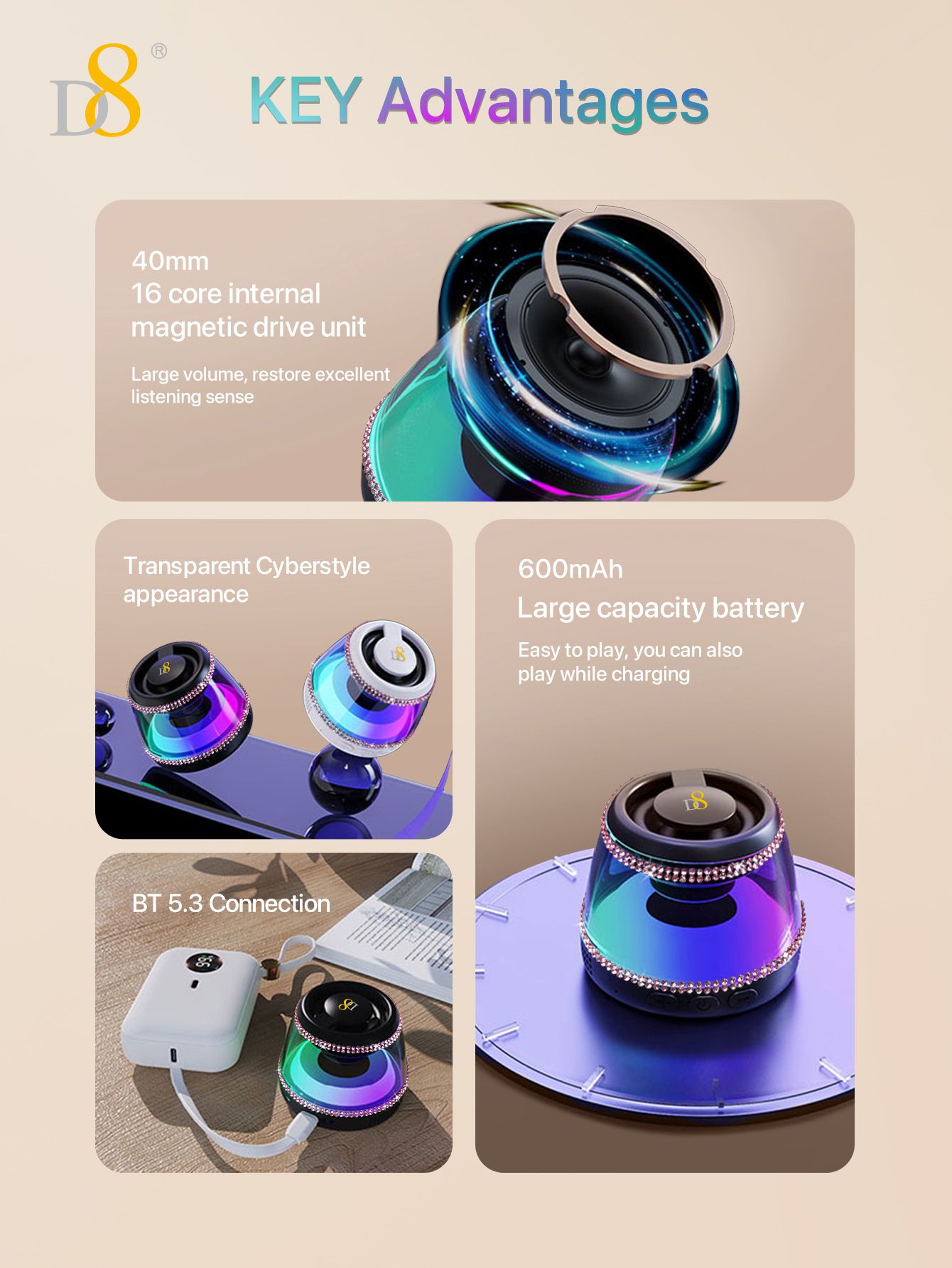 Diamond-Encrusted RGB Light Bluetooth Speaker