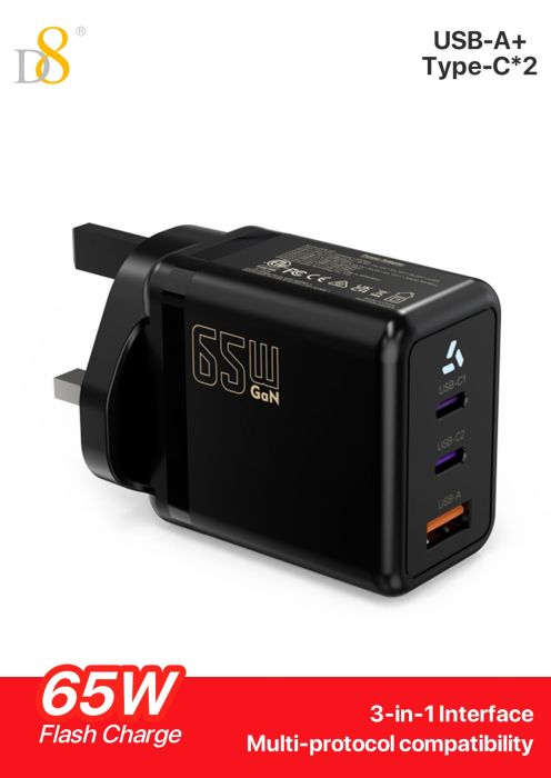 65W GaN 3-Port Fast Charger (2C1A, UK Plug)