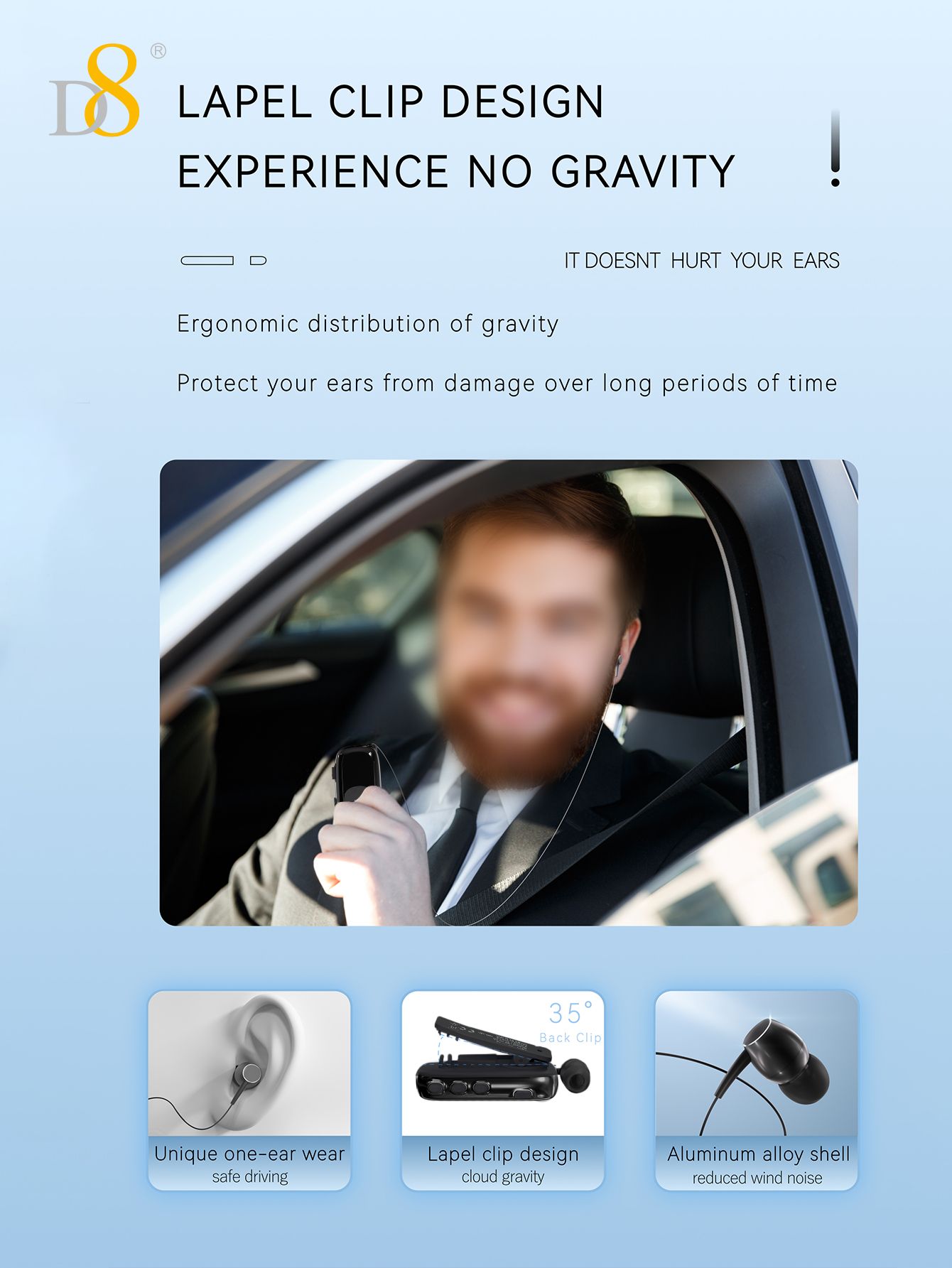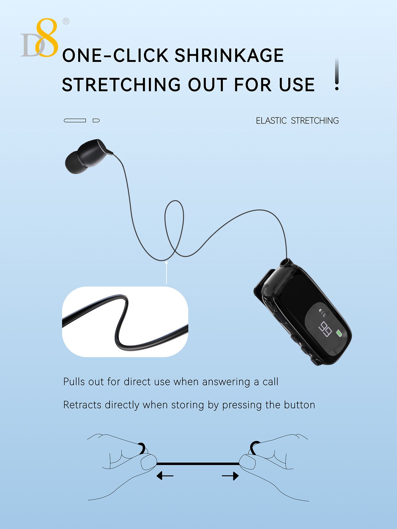 Bluetooth Collar Clip Headset (LCD Display, 20H Music Time, Lapel Clip Design, One-Click Shrinkage, Black)