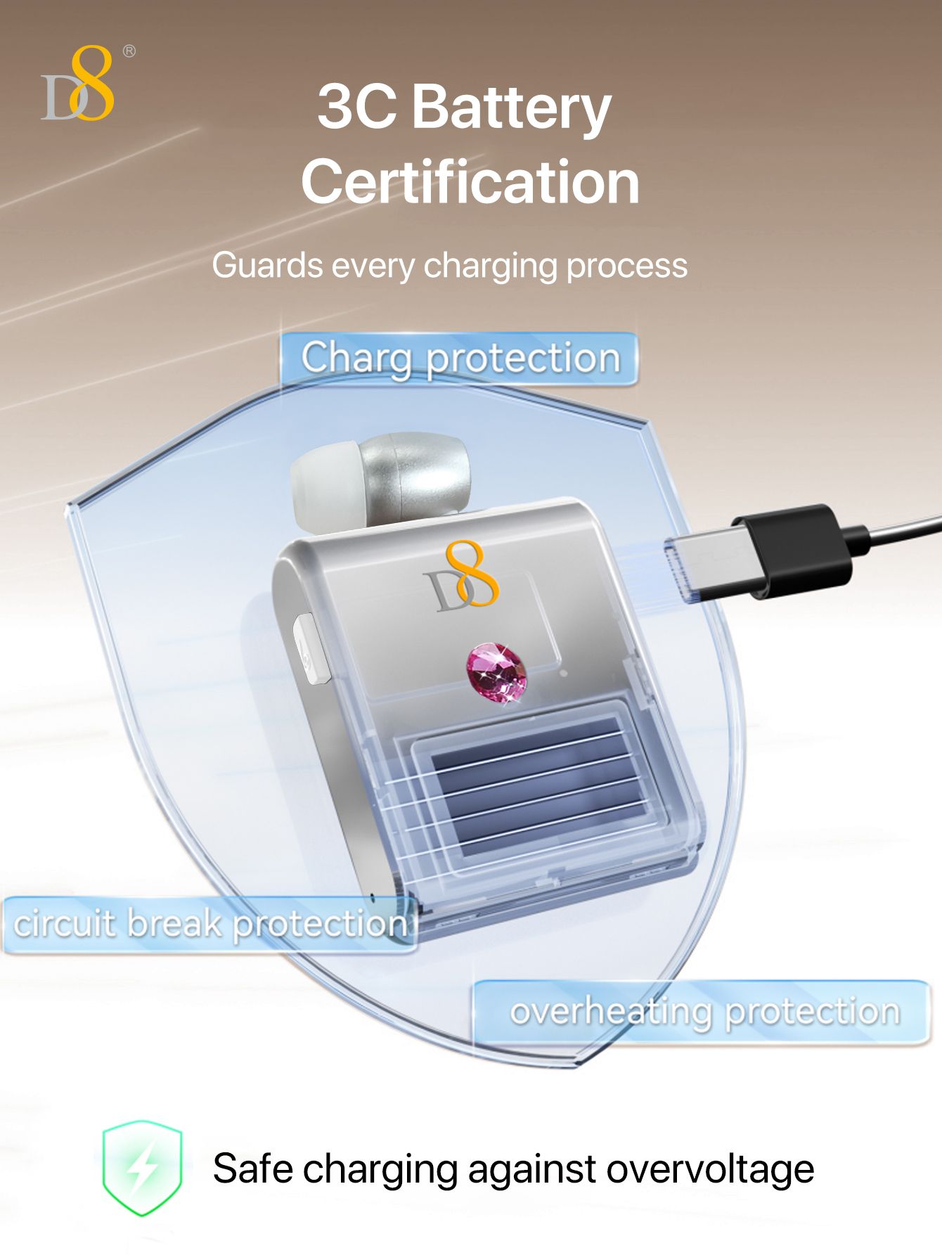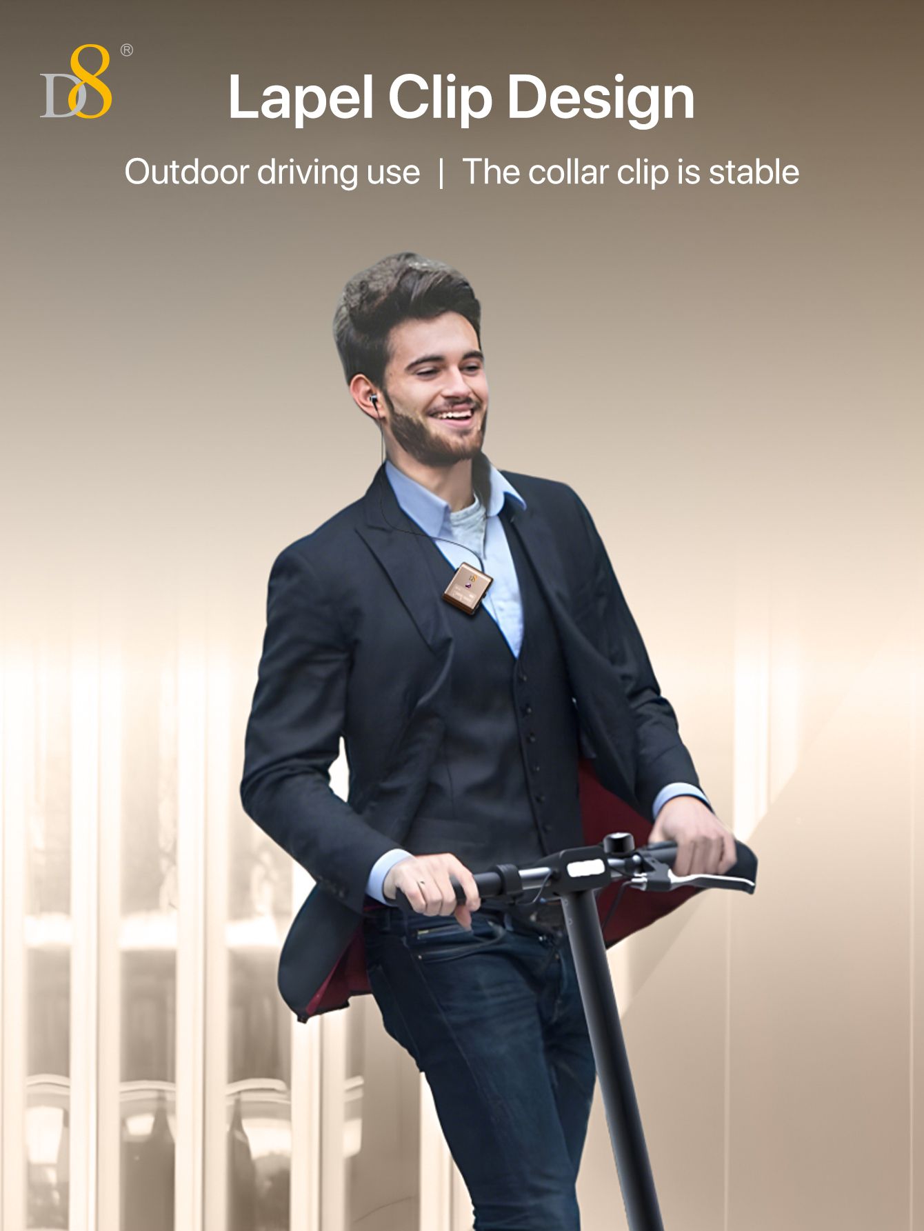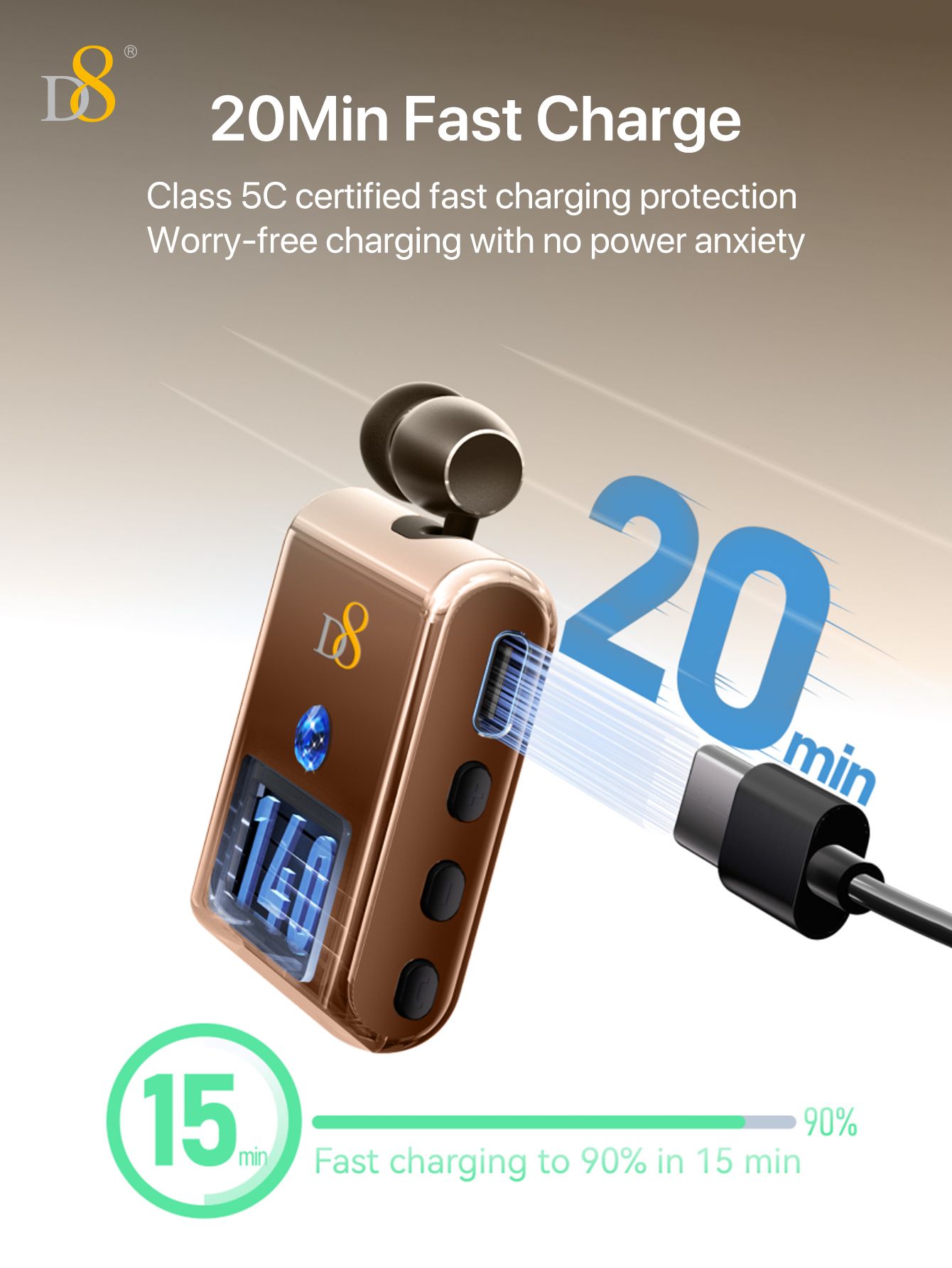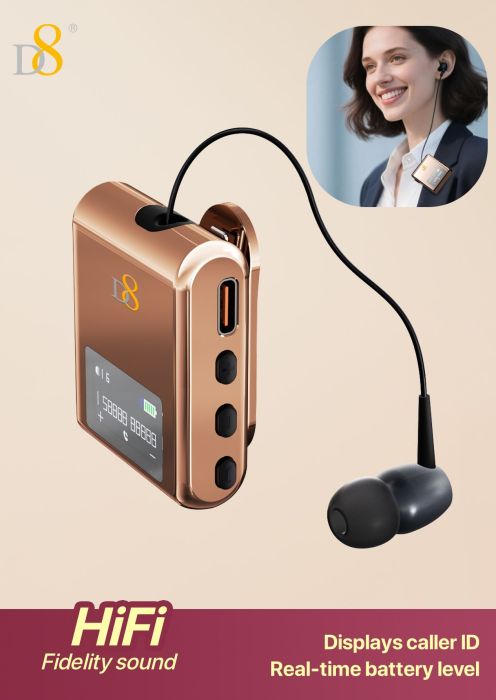 Bluetooth Lapel Clip Headset (HiFi Fidelity Sound, Caller ID Display, Real-Time Battery Level, Type-C Charging, Gold)