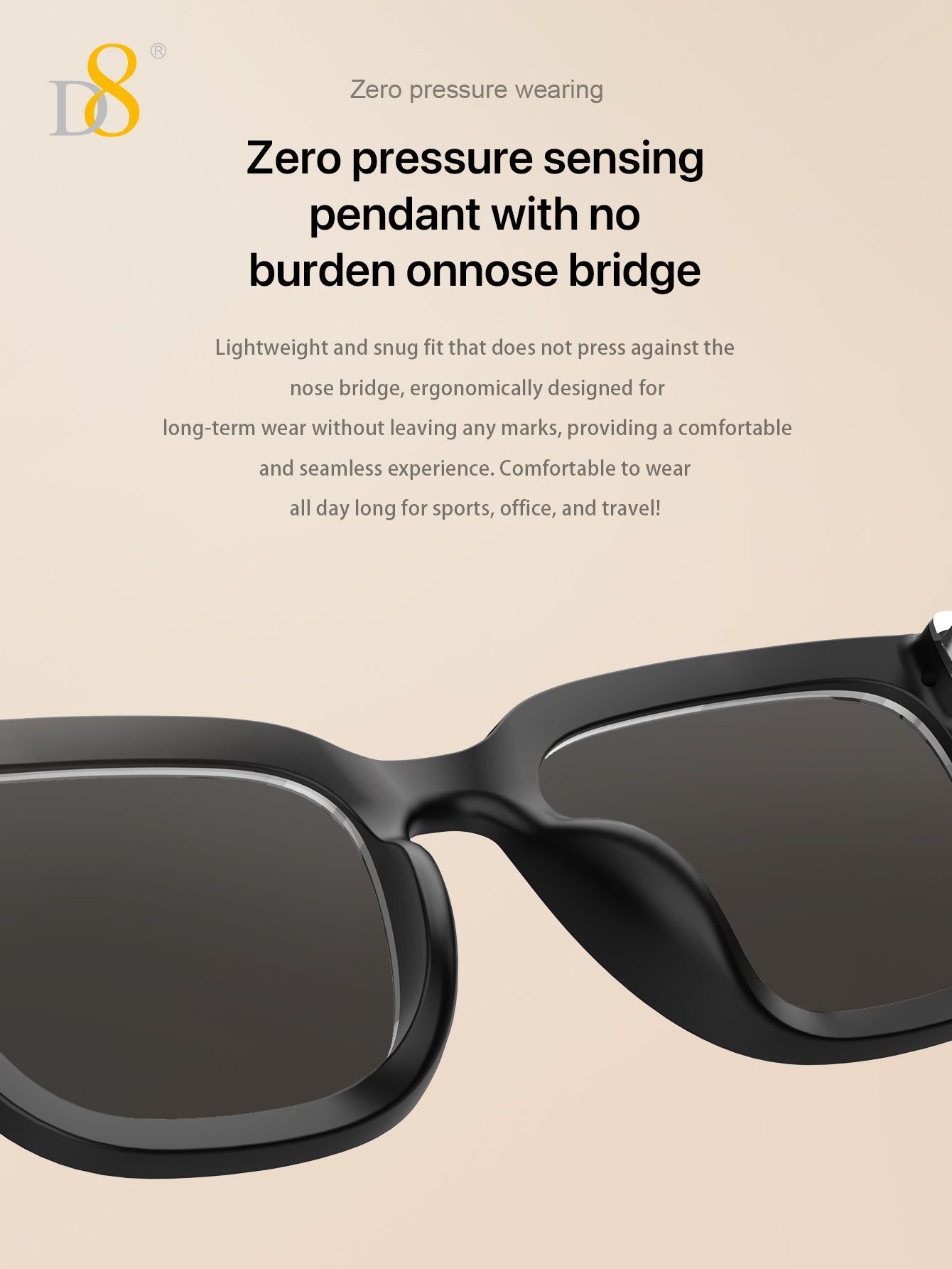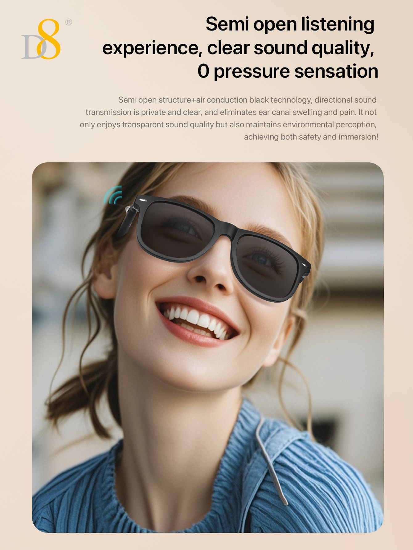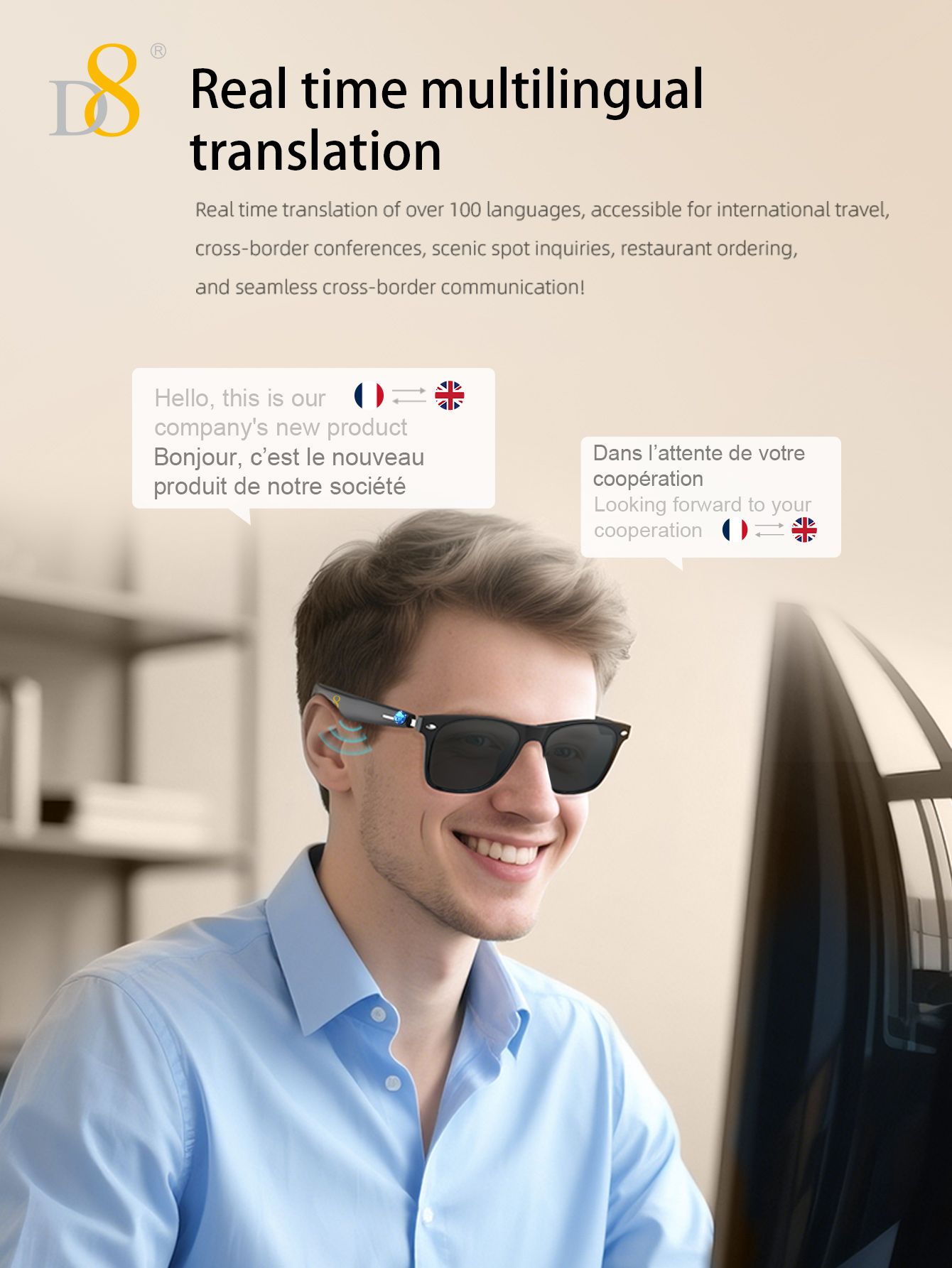 Smart Translation Glasses (Intelligent Interaction, Semi Open Listening, Fashion Sunglasses Design, Black)