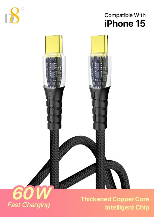 60W Fast Charging USB-C to USB-C Cable (Thickened Copper Core, Intelligent Chip, Gold-Plated Connector, Braided, Compatible with iPhone 15, Black)