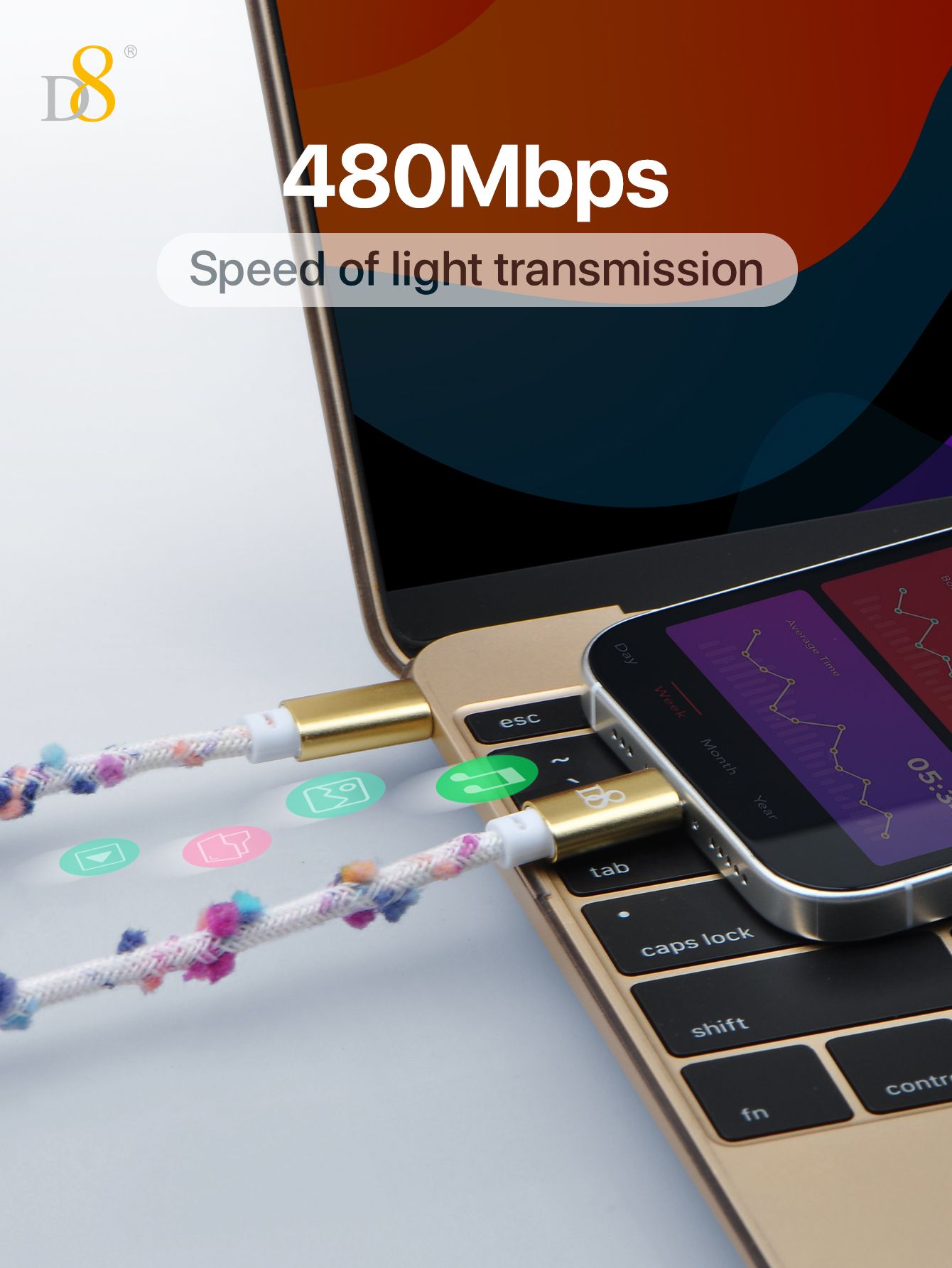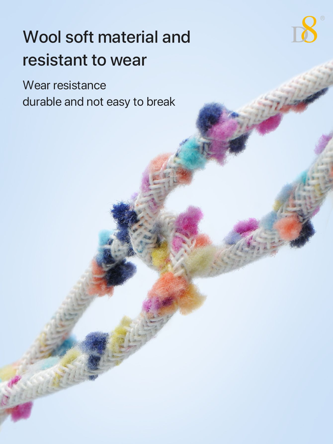60W Fast Charging USB-C to USB-C Cable (Wool Soft Material, Colorful Pom-Pom Design, 480Mbps Transfer, Compatible with iPhone 15, White)