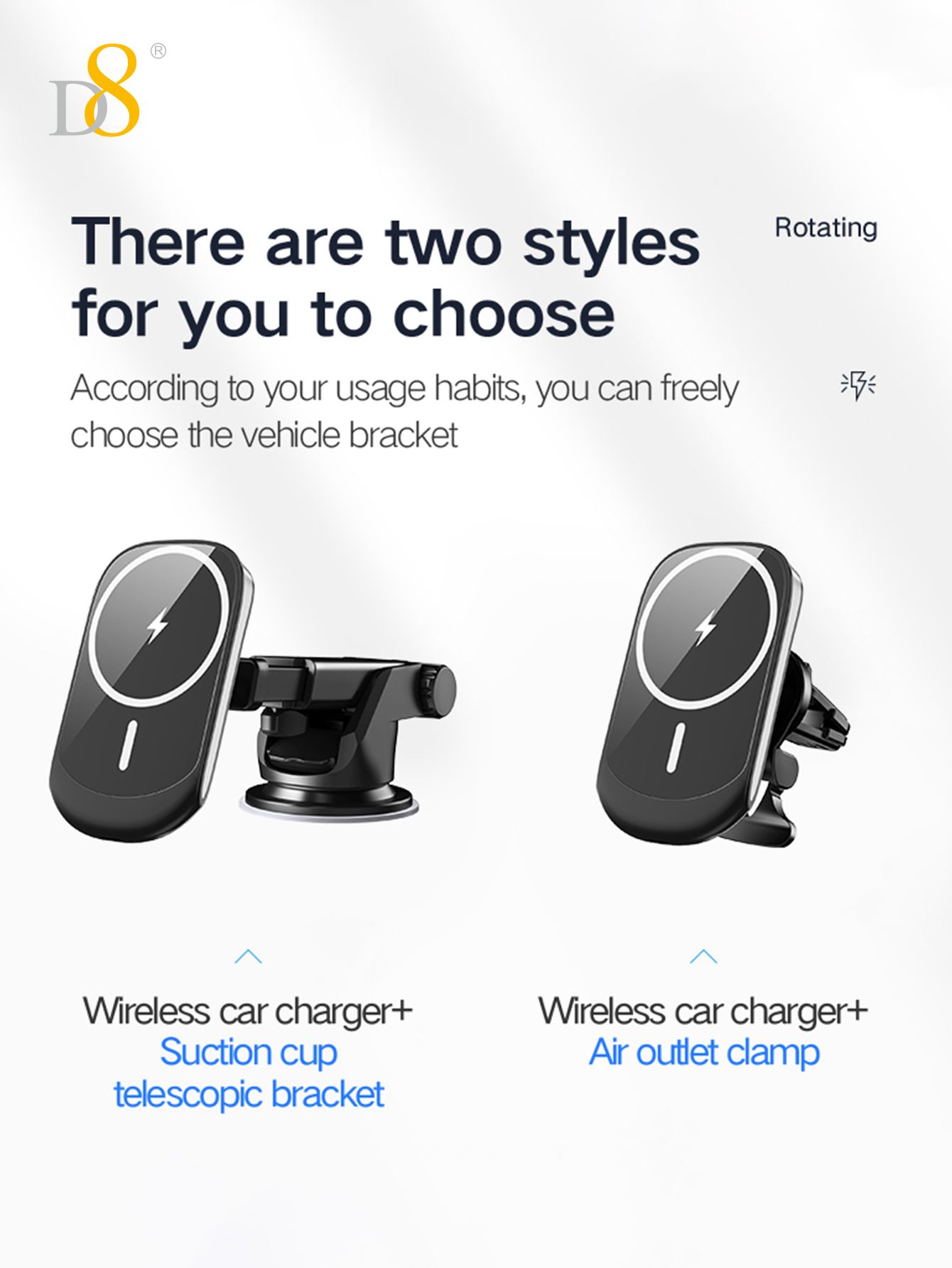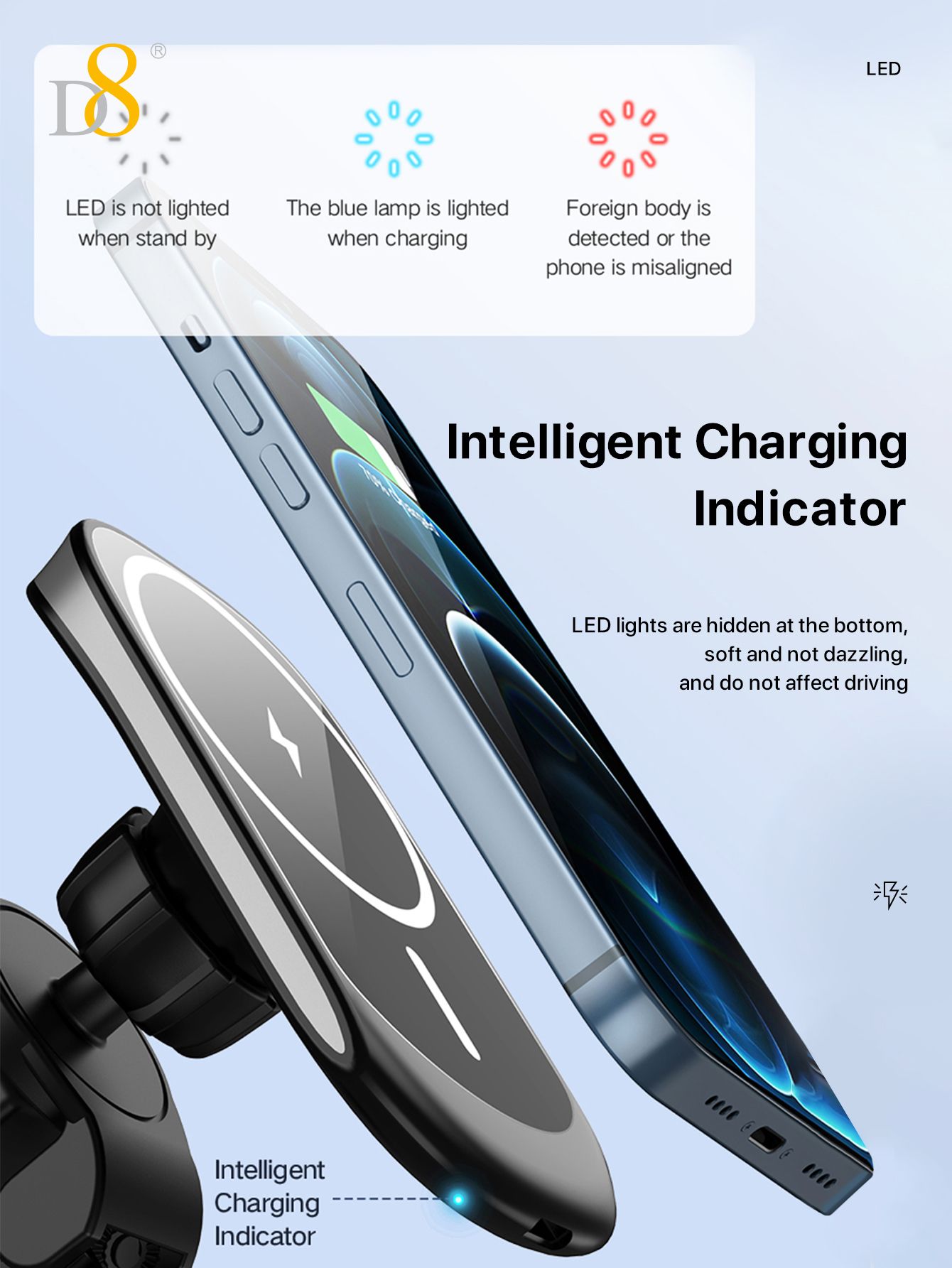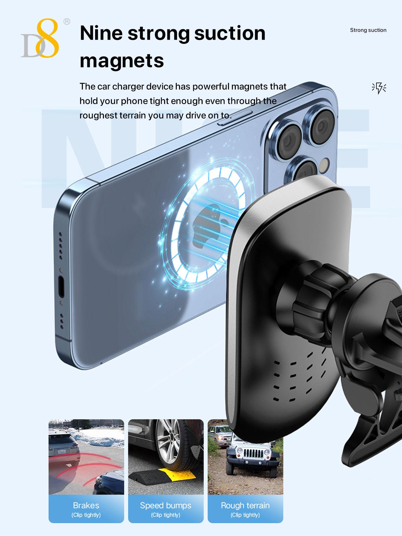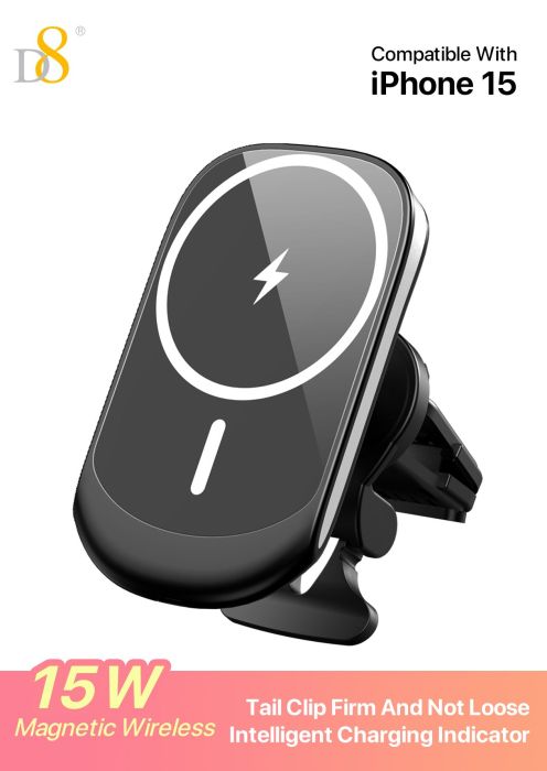 15W Magnetic Wireless Car Charger Mount (Tail Clip Design, Compatible with iPhone 15, Black)
