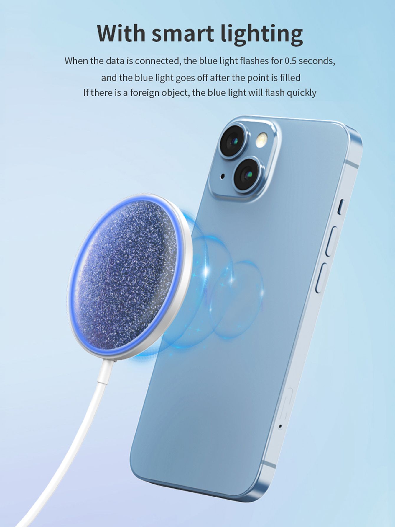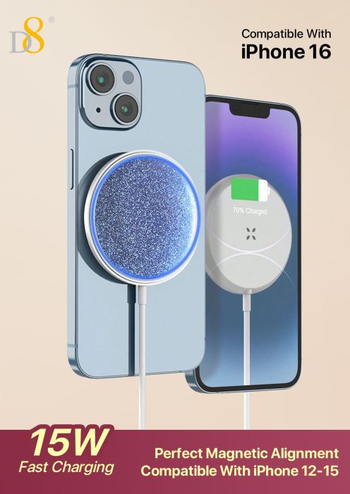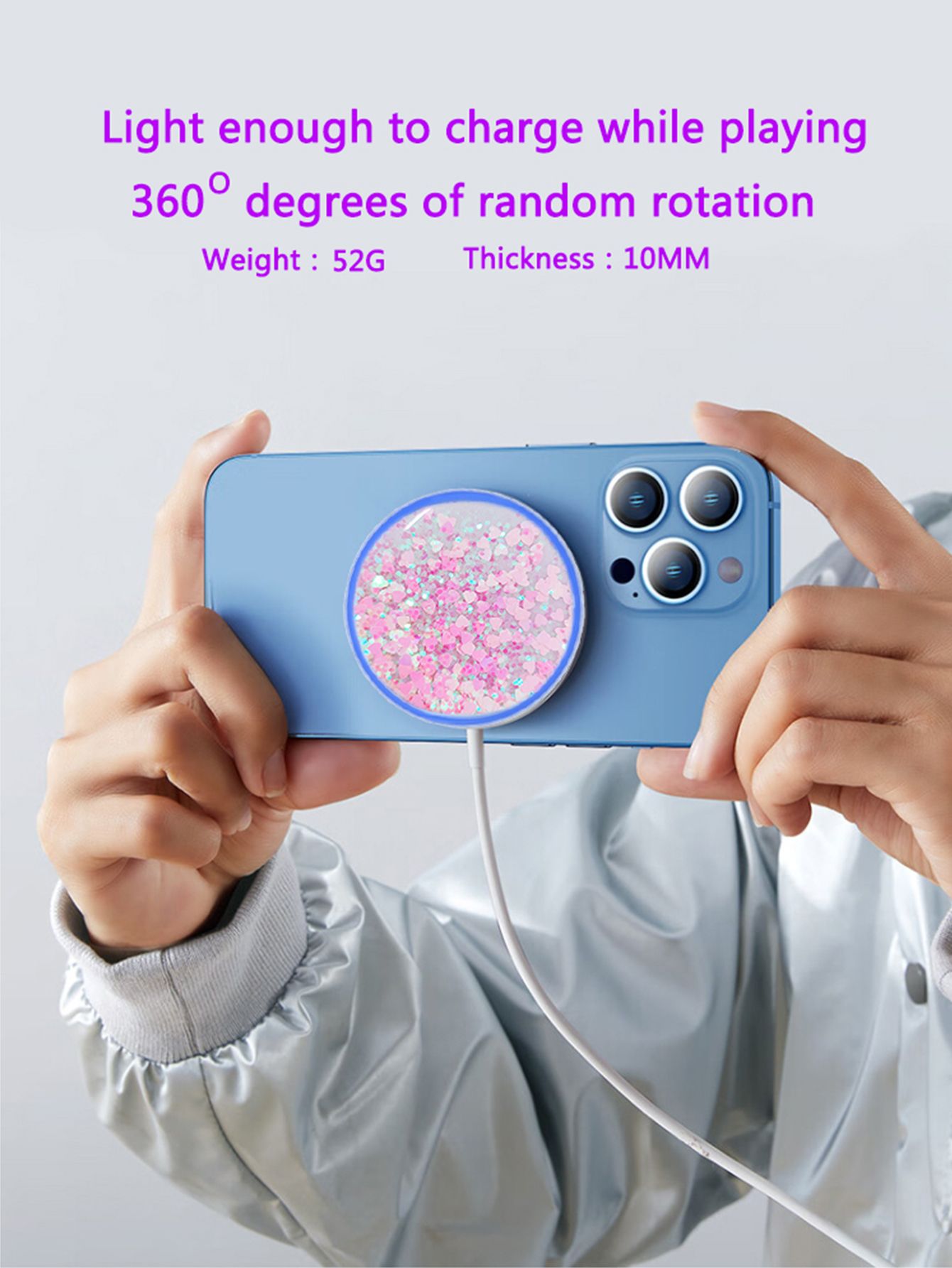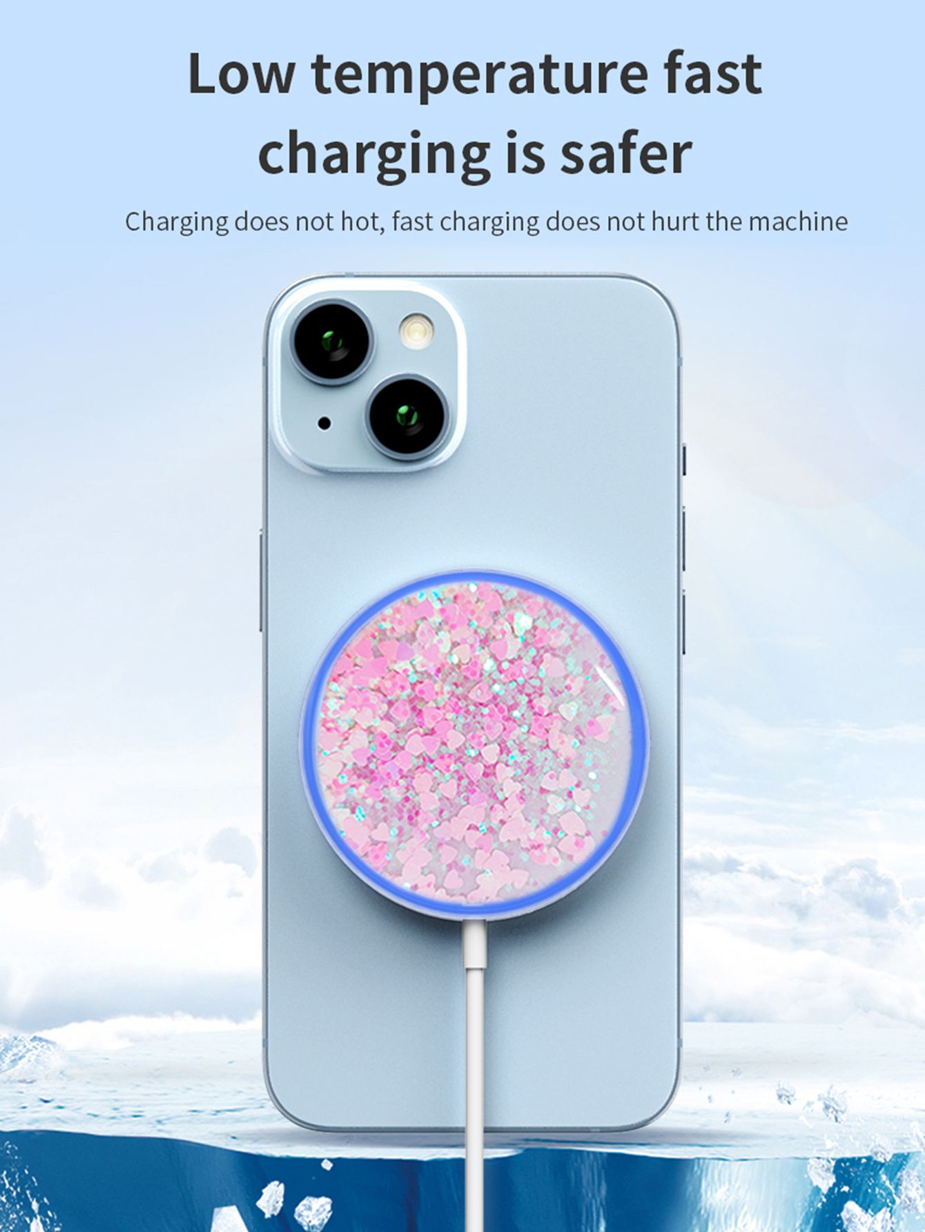 15W Magnetic Wireless Charger (360° Rotation, Glitter Design, Compatible with iPhone 12-16, Pink)