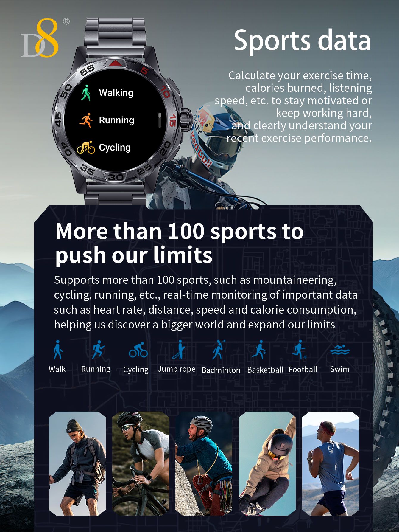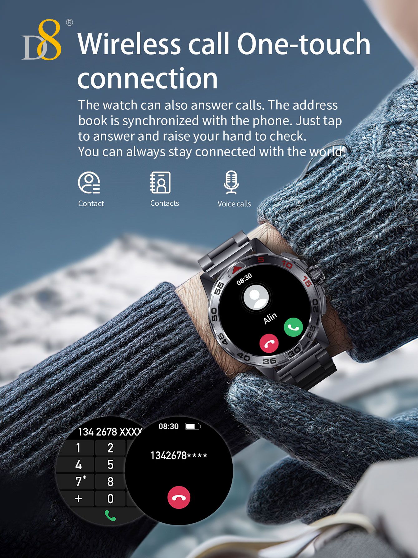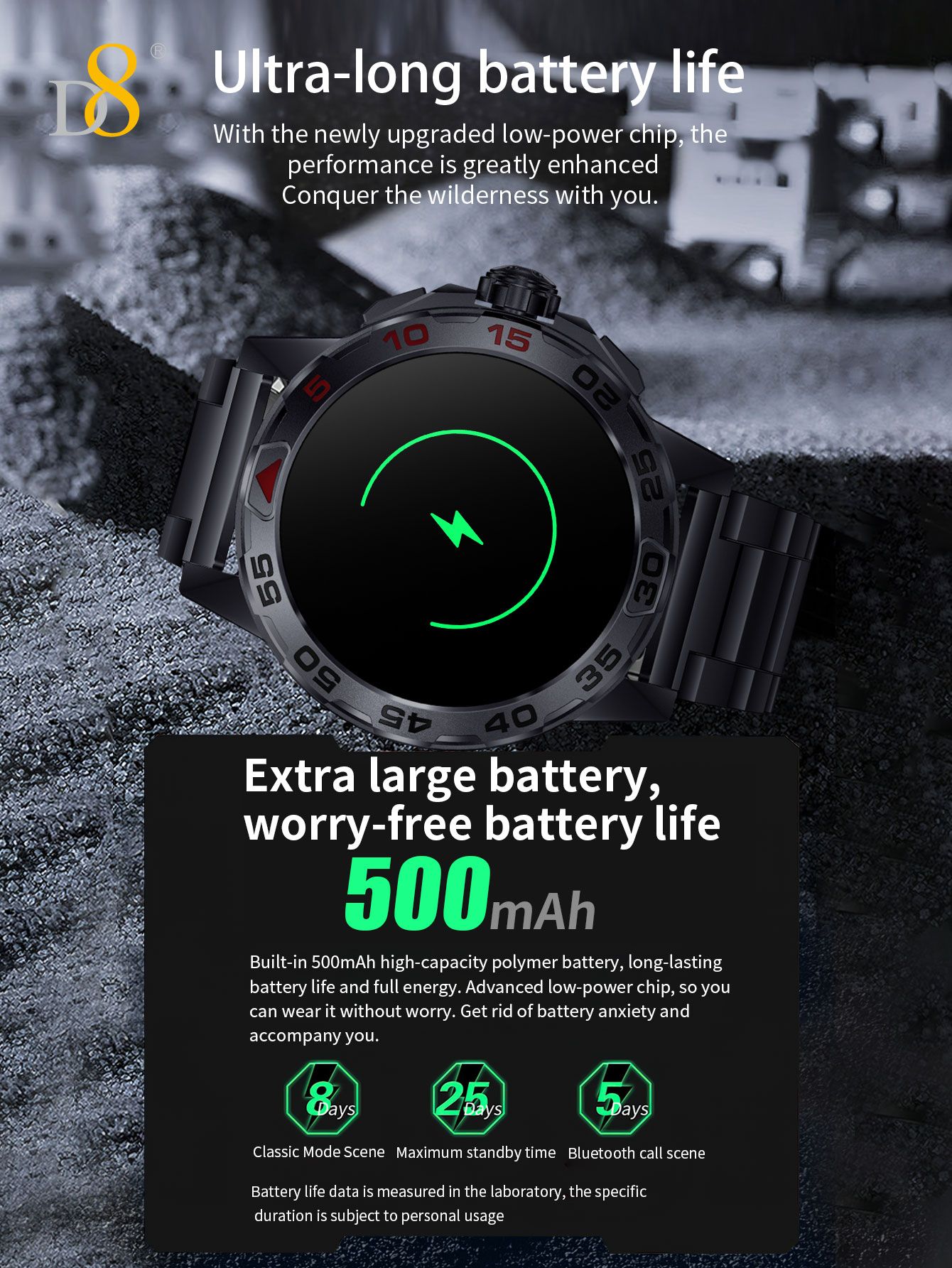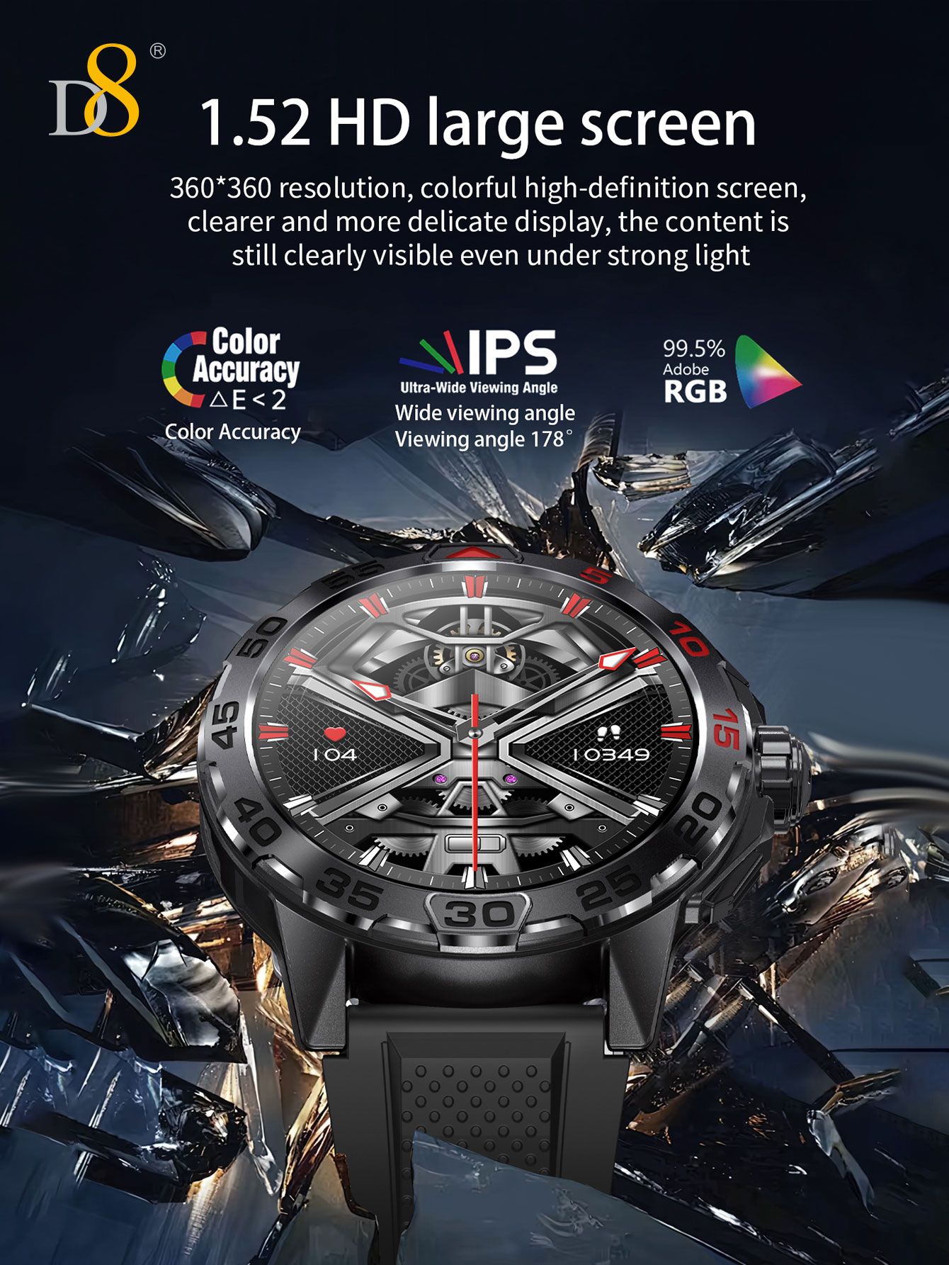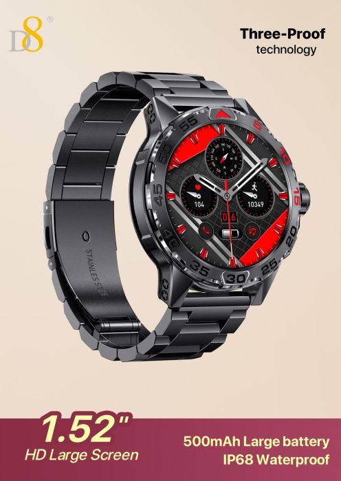 1.52" HD Large Screen 500mAh Large Battery IP68 Waterproof Smart Watch (Stainless Steel Strap, Sporty Business Style)