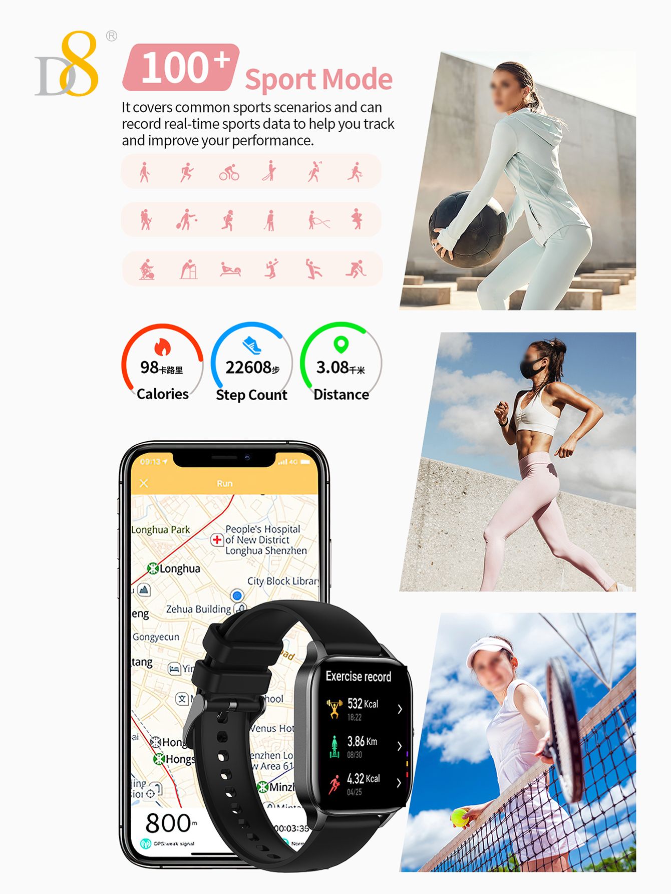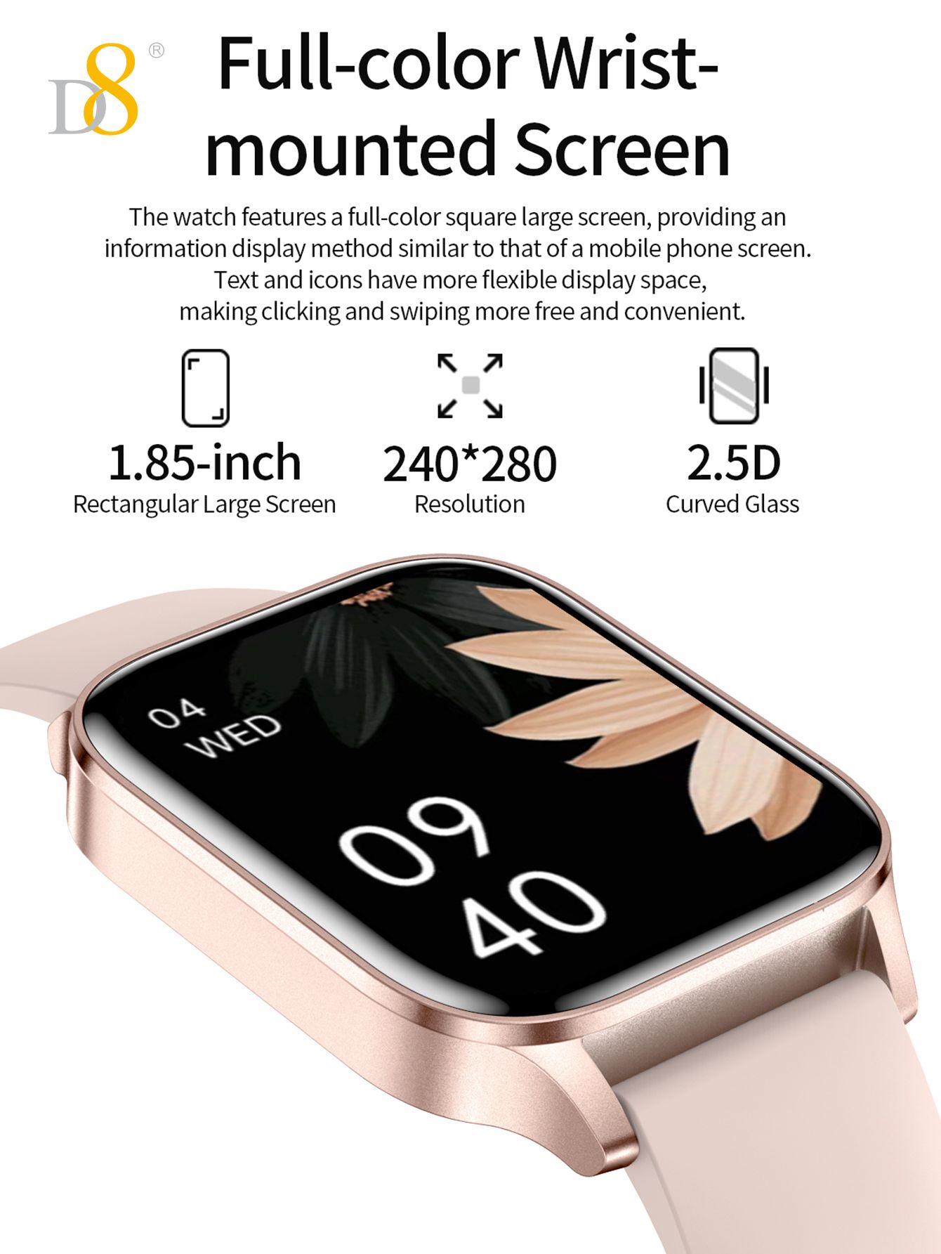1.85" TFT Large Screen 20-day Battery Life IP68 Waterproof Smart Watch (Silicone Strap, Fashion Women's Style)