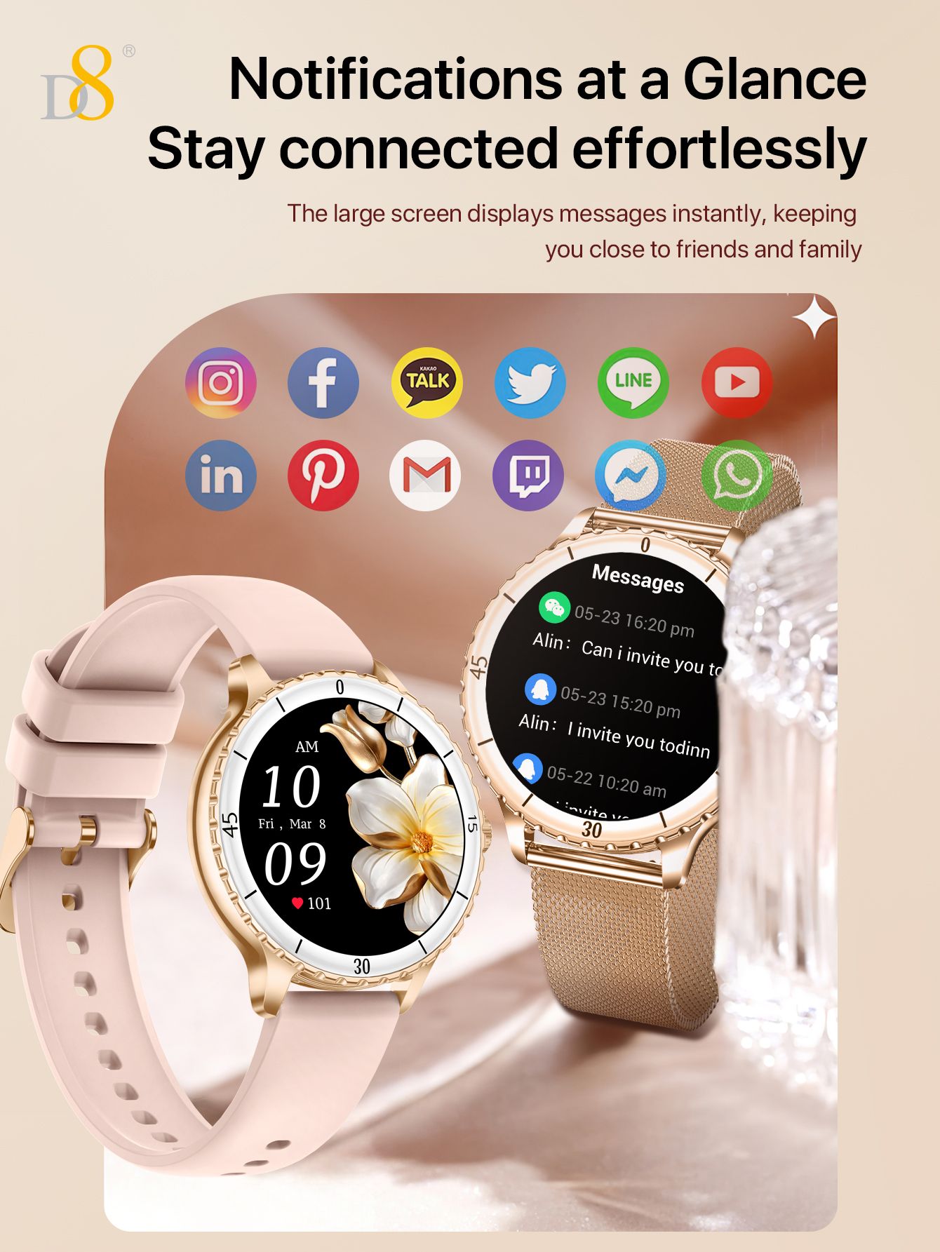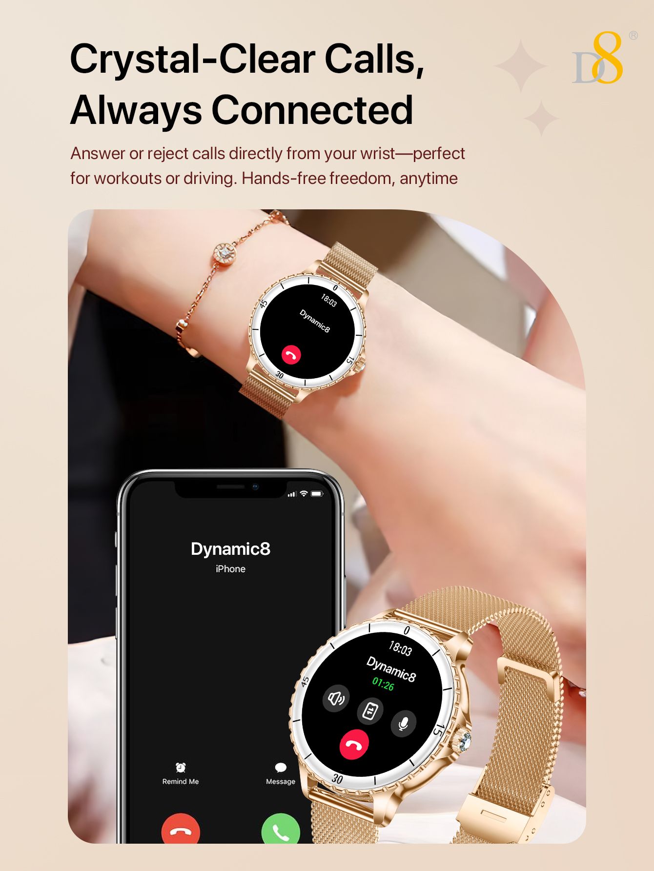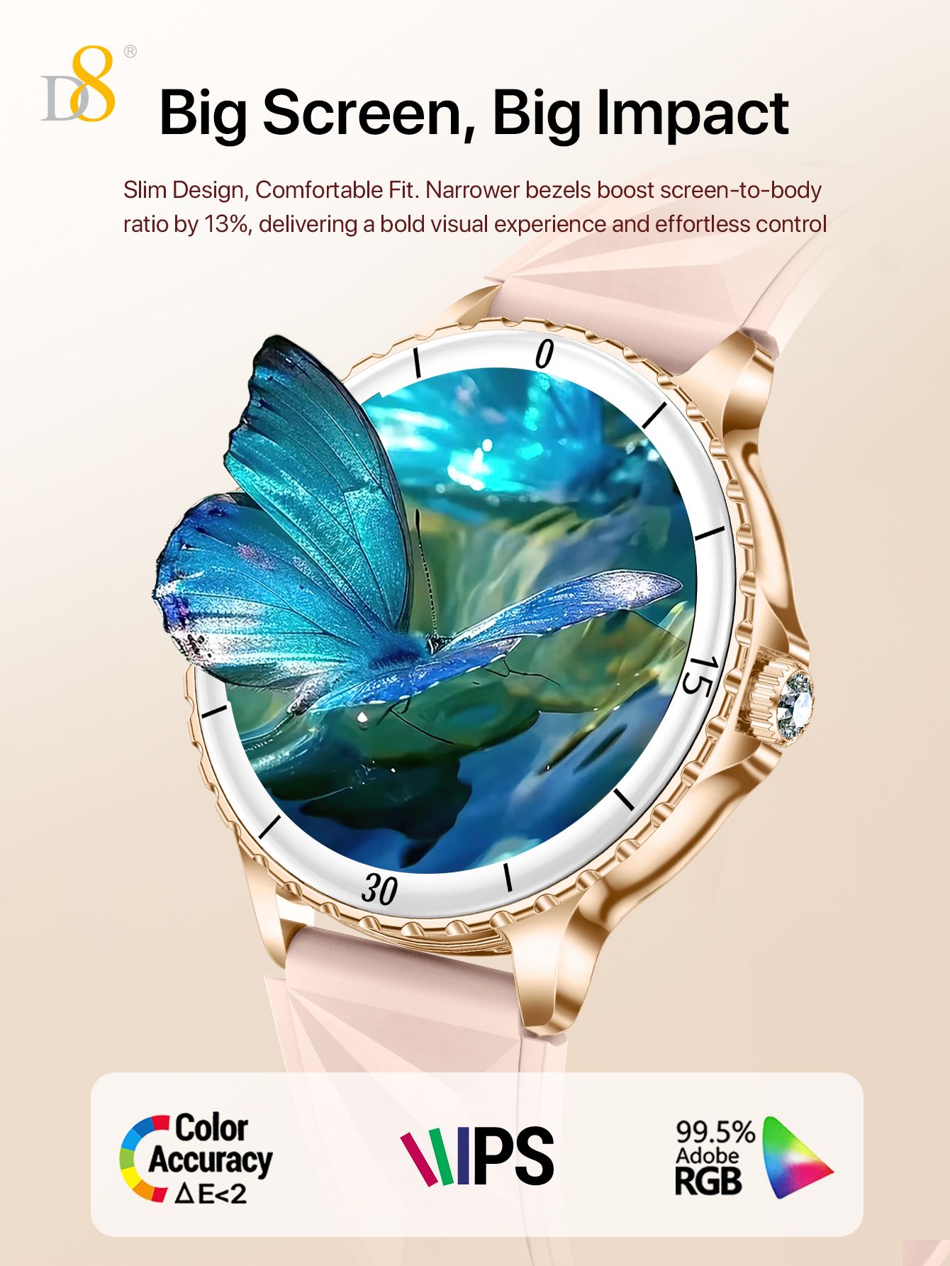 1.27" Vibrant Display Cycle Care Smart Watch (Diamond Inlay, 100+ Sports Modes, Women's Health Style)