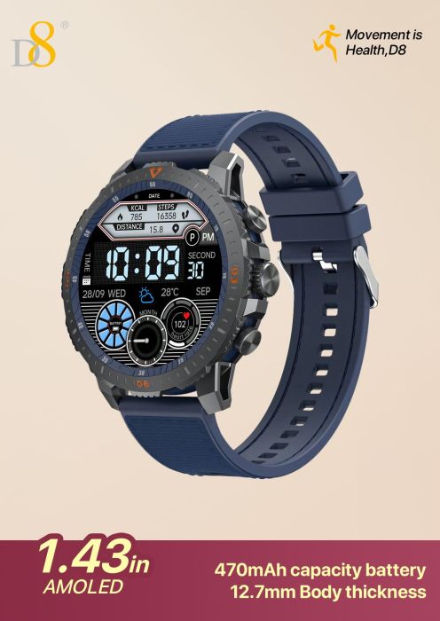 1.43" AMOLED Screen Sports Smart Watch (470mAh Large Battery, 12.7mm Thin Body, Blue Strap)