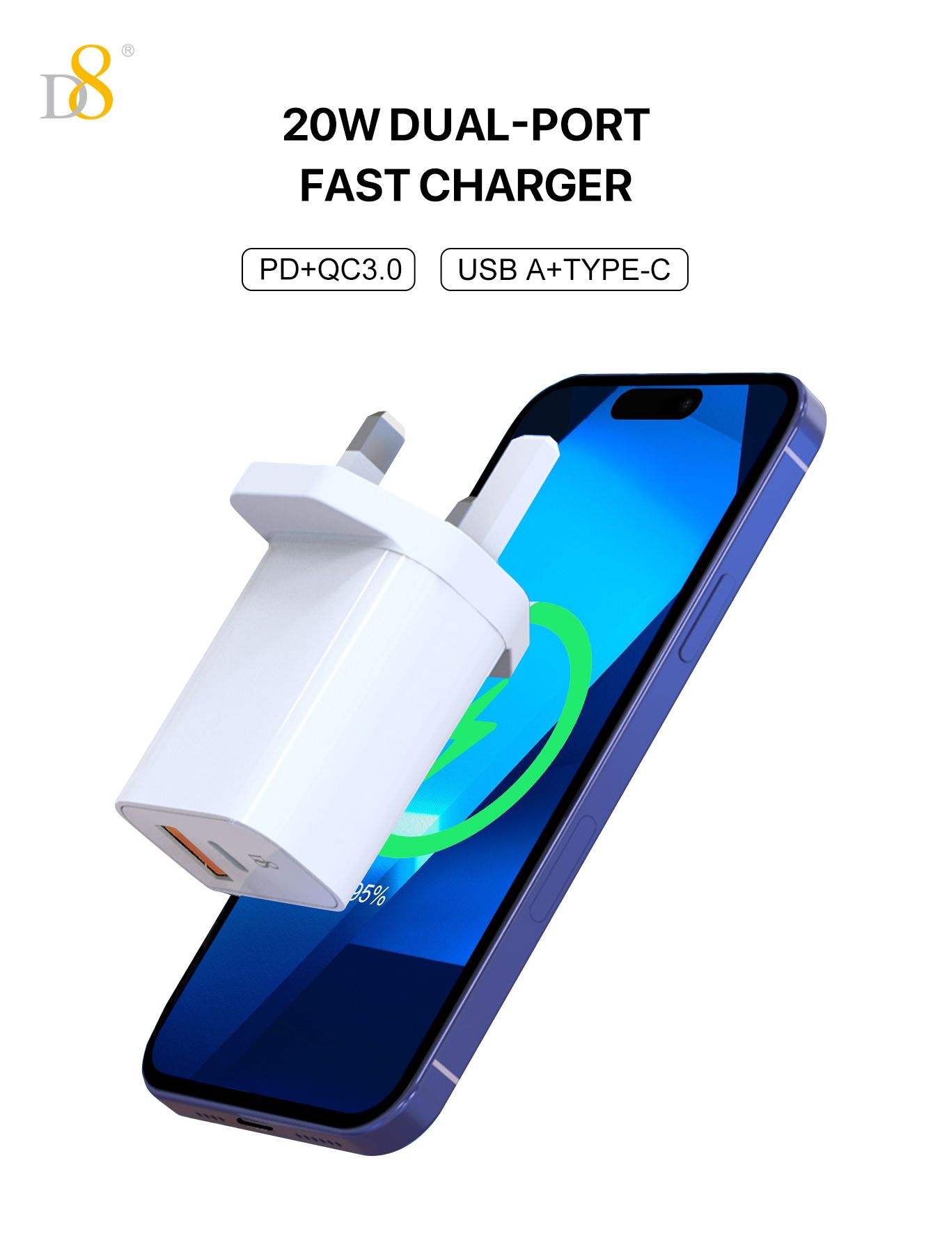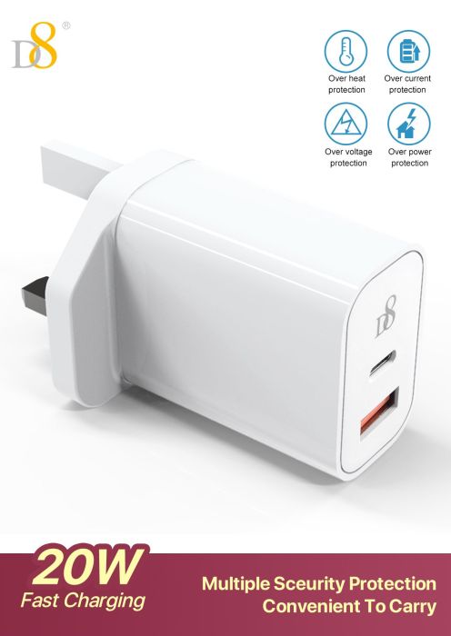 20W Dual-Port Fast Charger (USB-C + A, UK Plug)