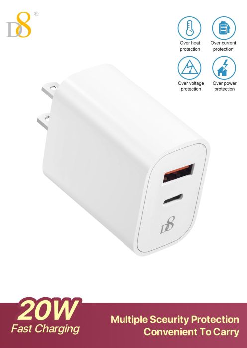 20W Dual-Port Fast Charger (USB-C + A, US Plug)