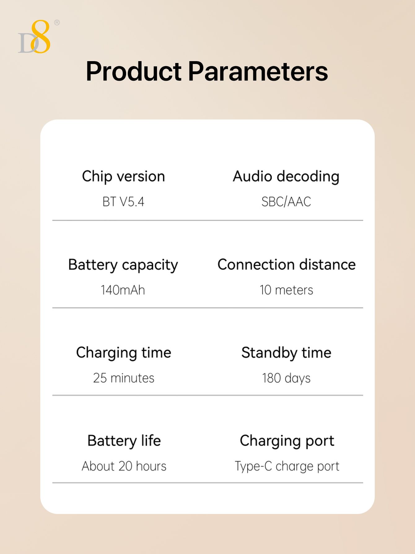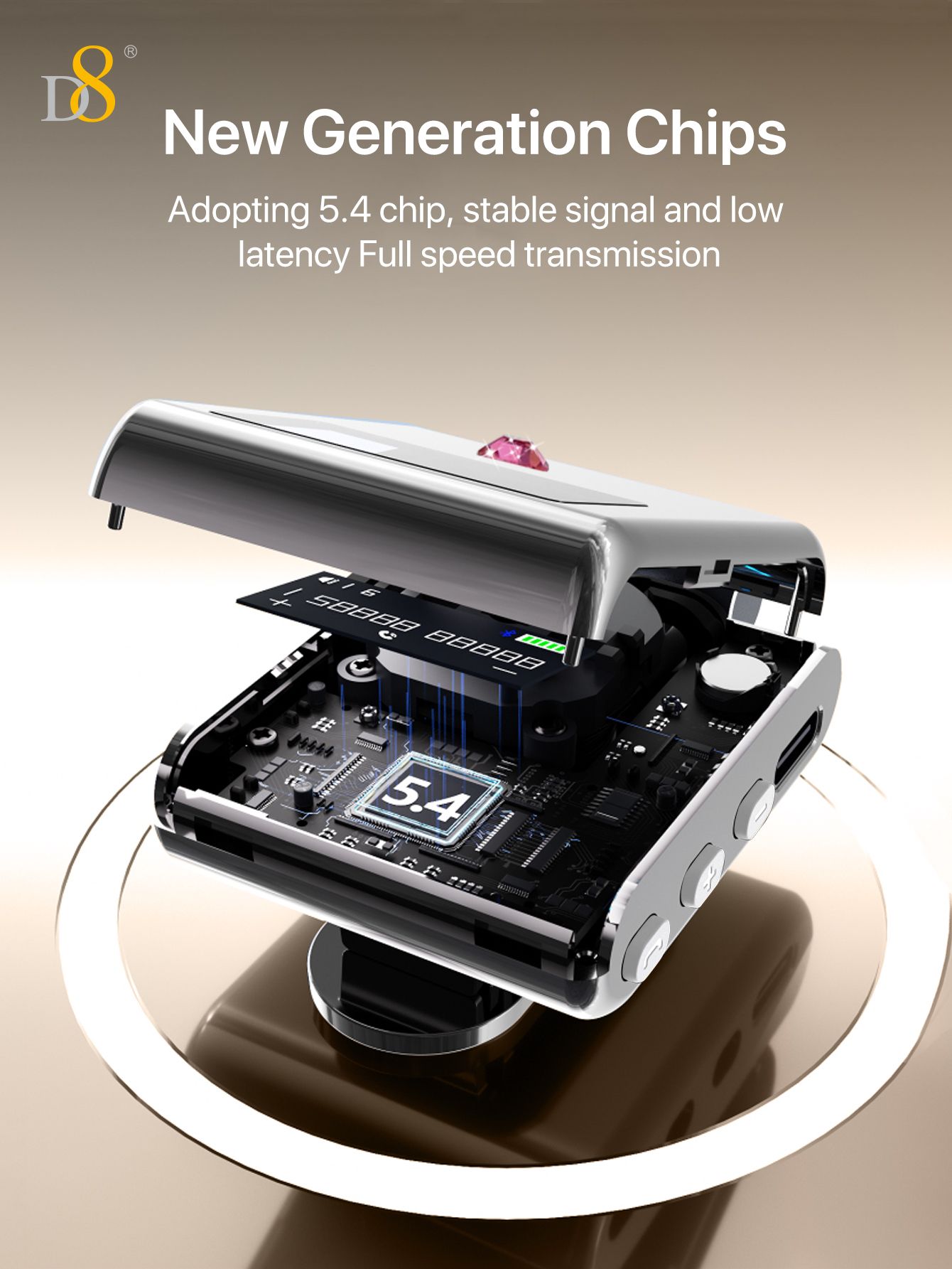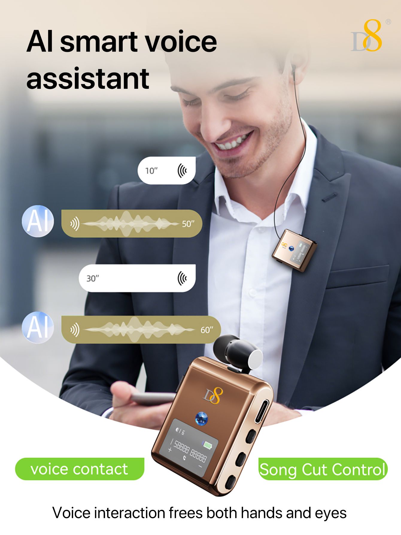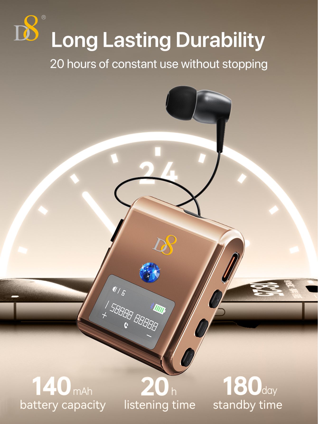 Bluetooth Lapel Clip Headset (HiFi Fidelity Sound, Caller ID Display, Real-Time Battery Level, Type-C Charging, Gold)