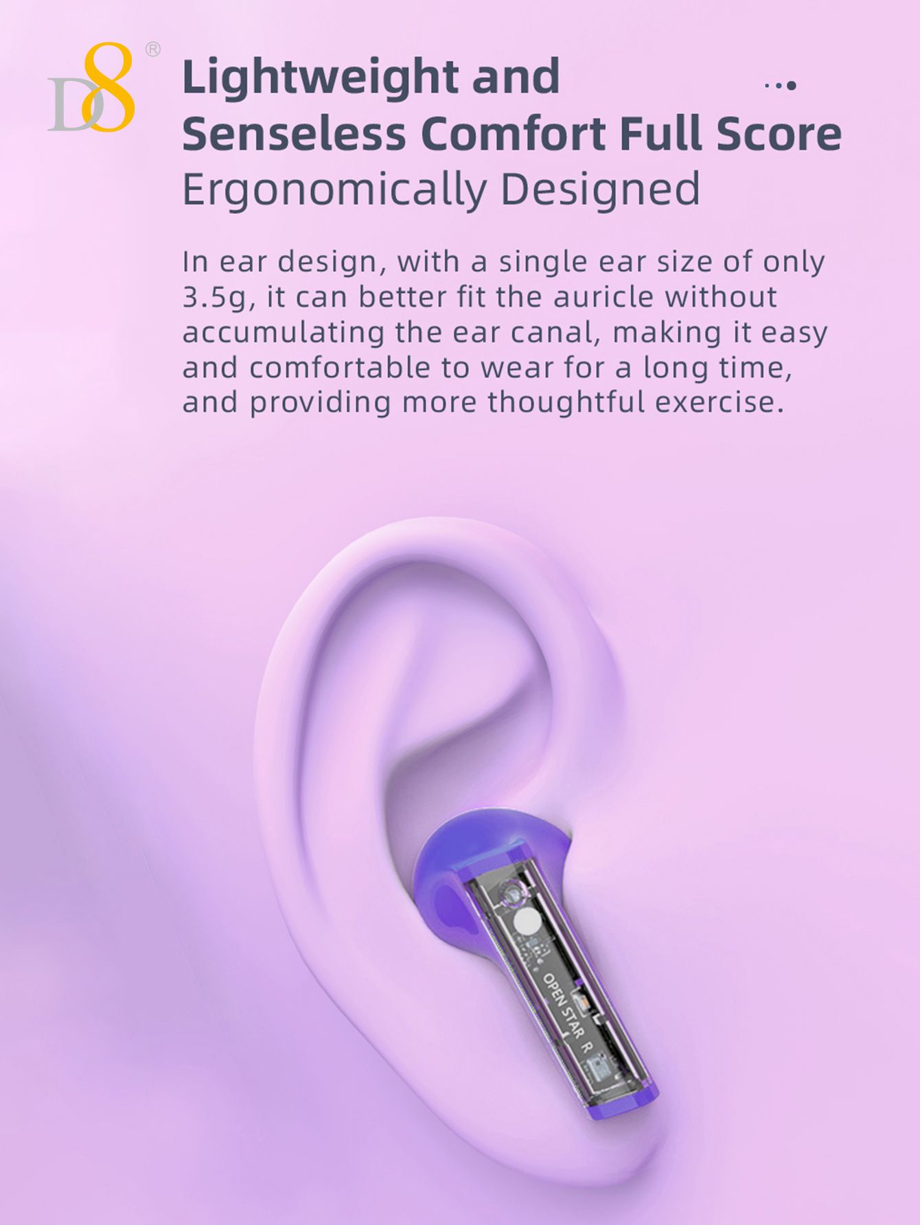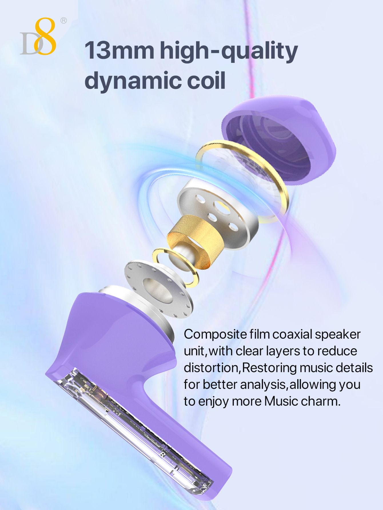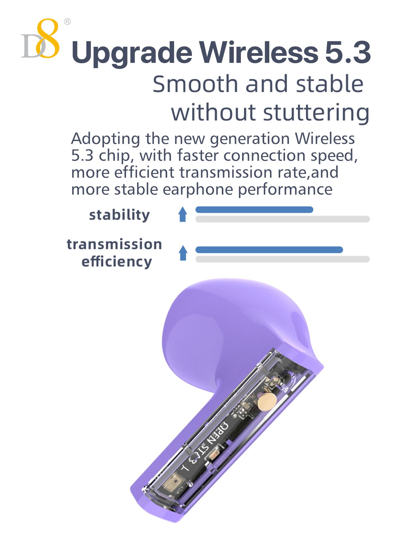 Bluetooth 5.3 TWS Earbuds (30H Total Battery with Charging Case, RGB Dazzling Light Effect, Near CD Level Sound, IPX5 Waterproof, Type-C Fast Charging, Touch Control, Transparent Purple Design)