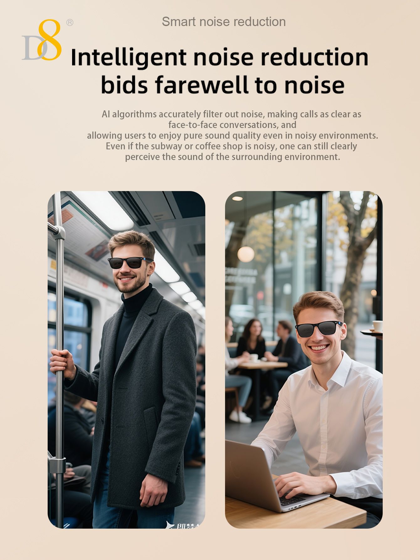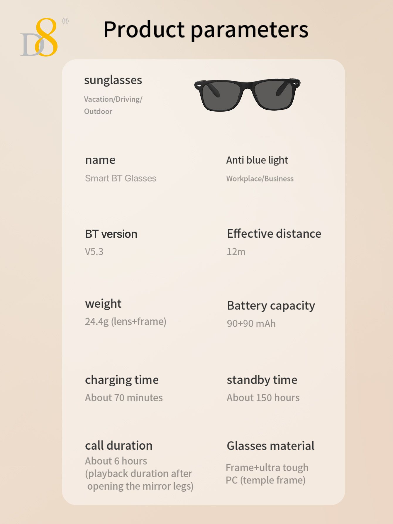 Smart Translation Glasses (Intelligent Interaction, Semi Open Listening, Fashion Sunglasses Design, Black)
