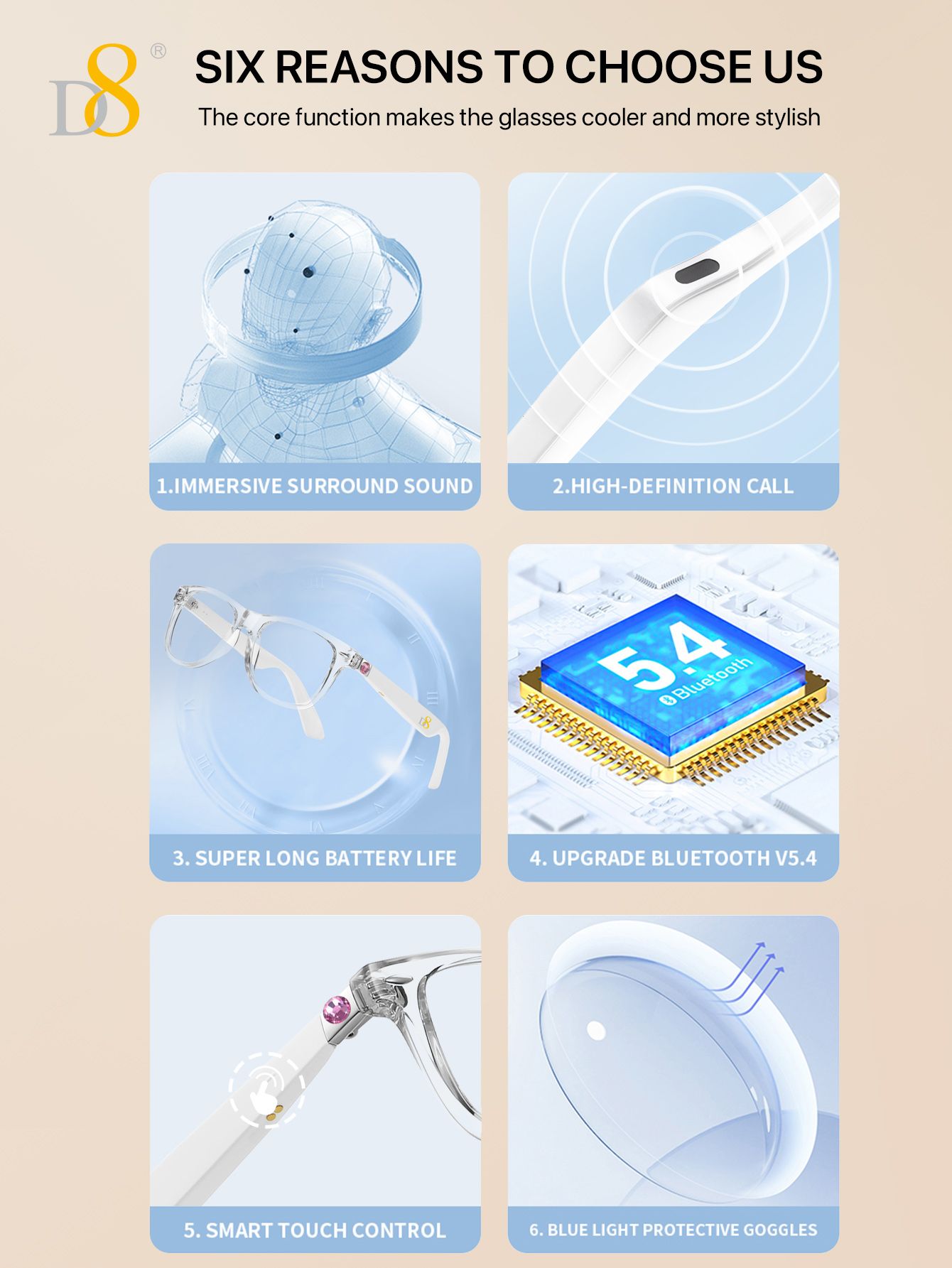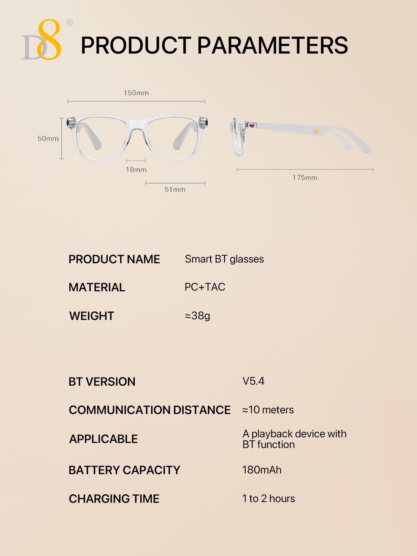 Translation Smart Glasses (Strong Battery Life, Semi Open Listening, Transparent Frame Design, White)