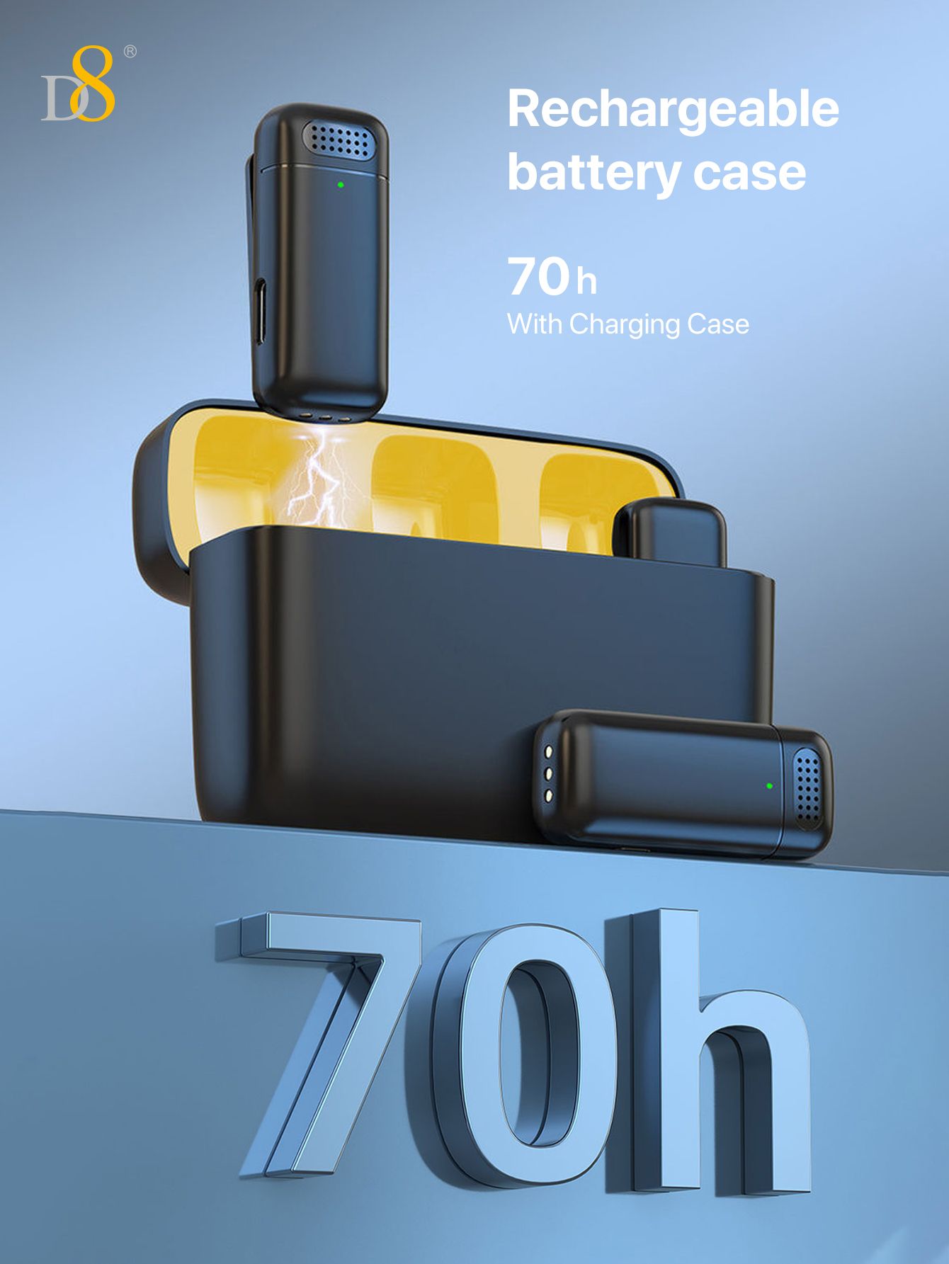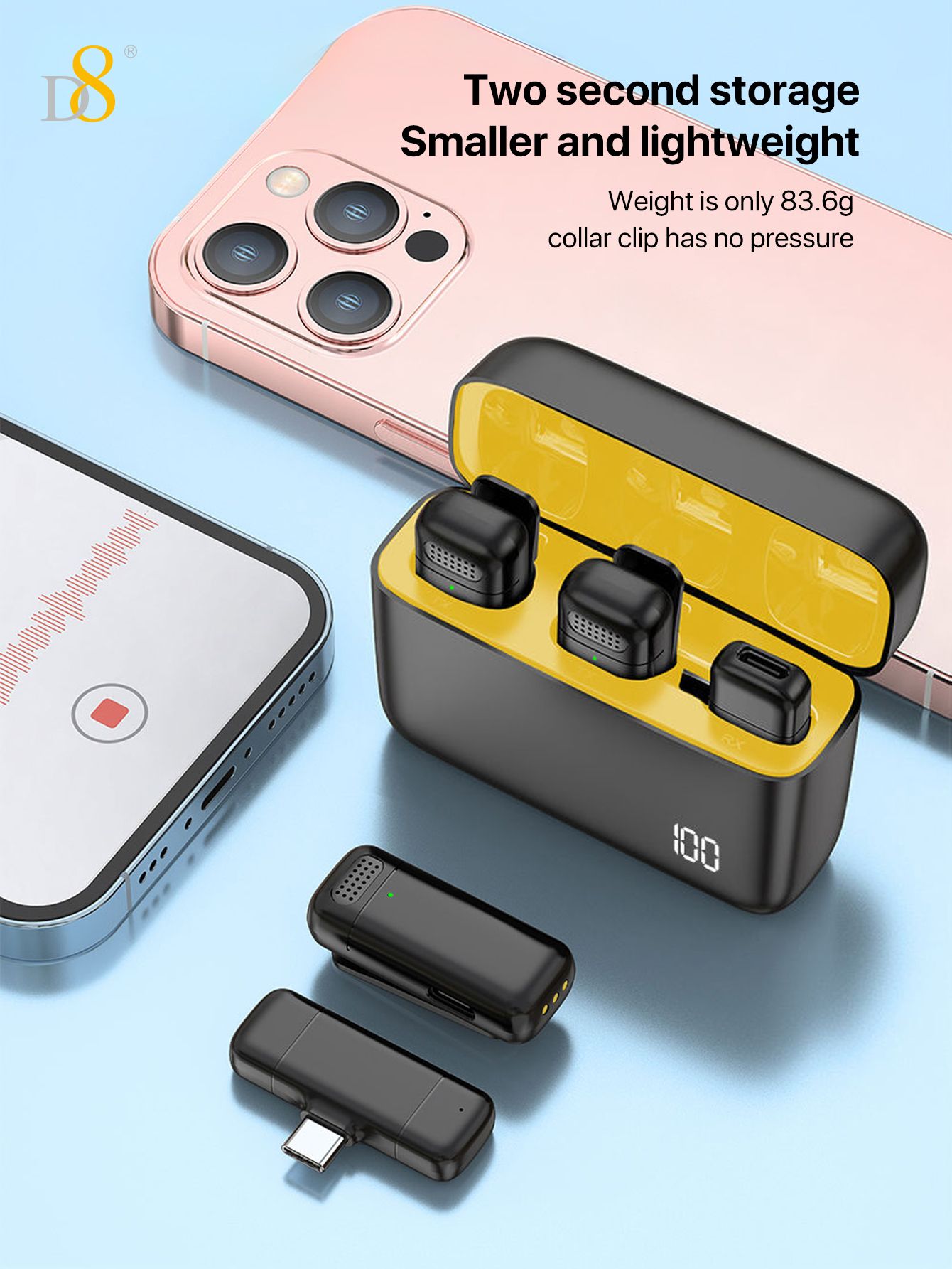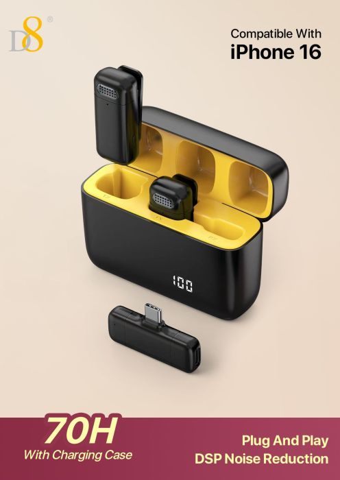 Wireless Lavalier Microphone Set (70H Battery with Charging Case, DSP Noise Reduction, Plug & Play, Compatible with iPhone 16, Black & Yellow)