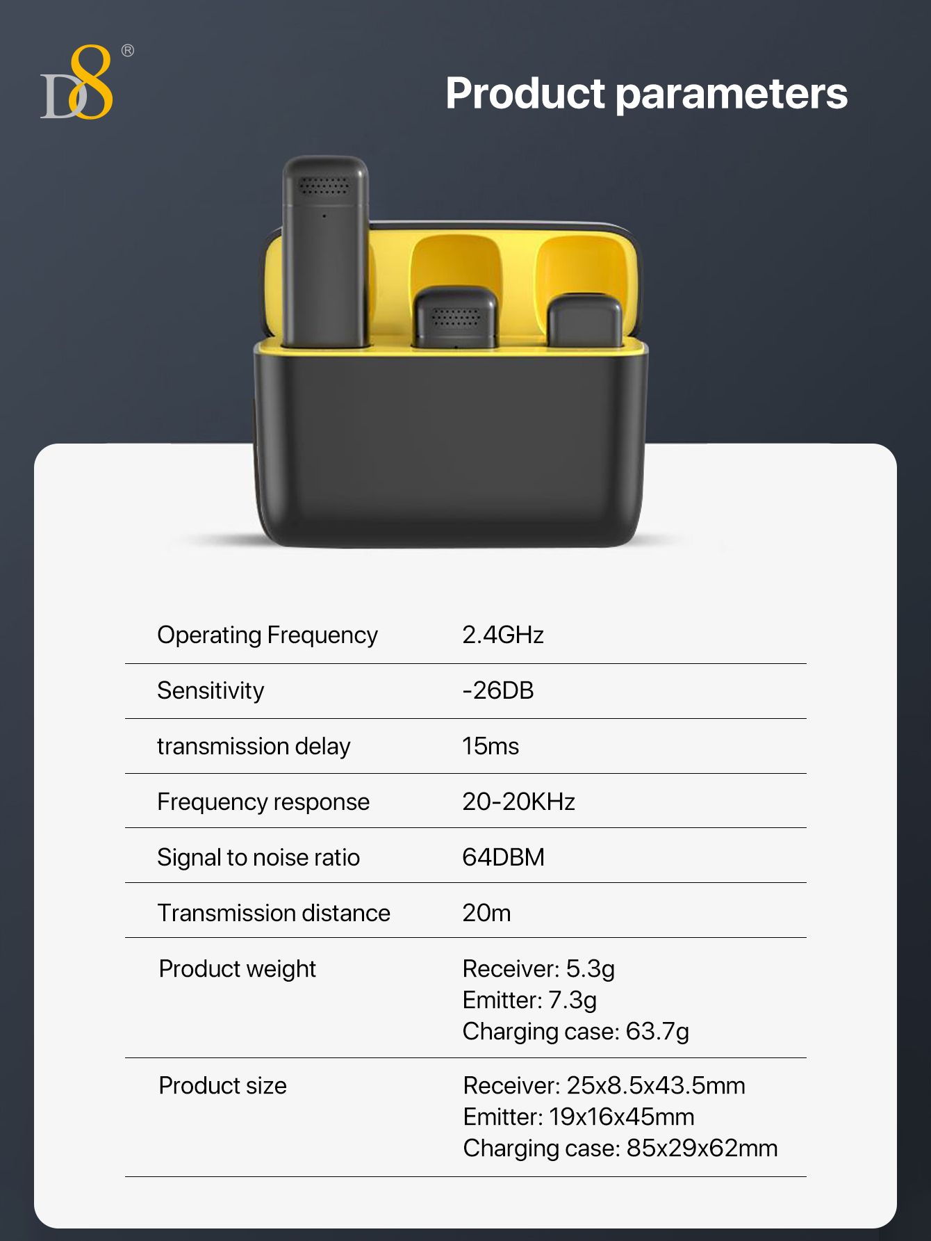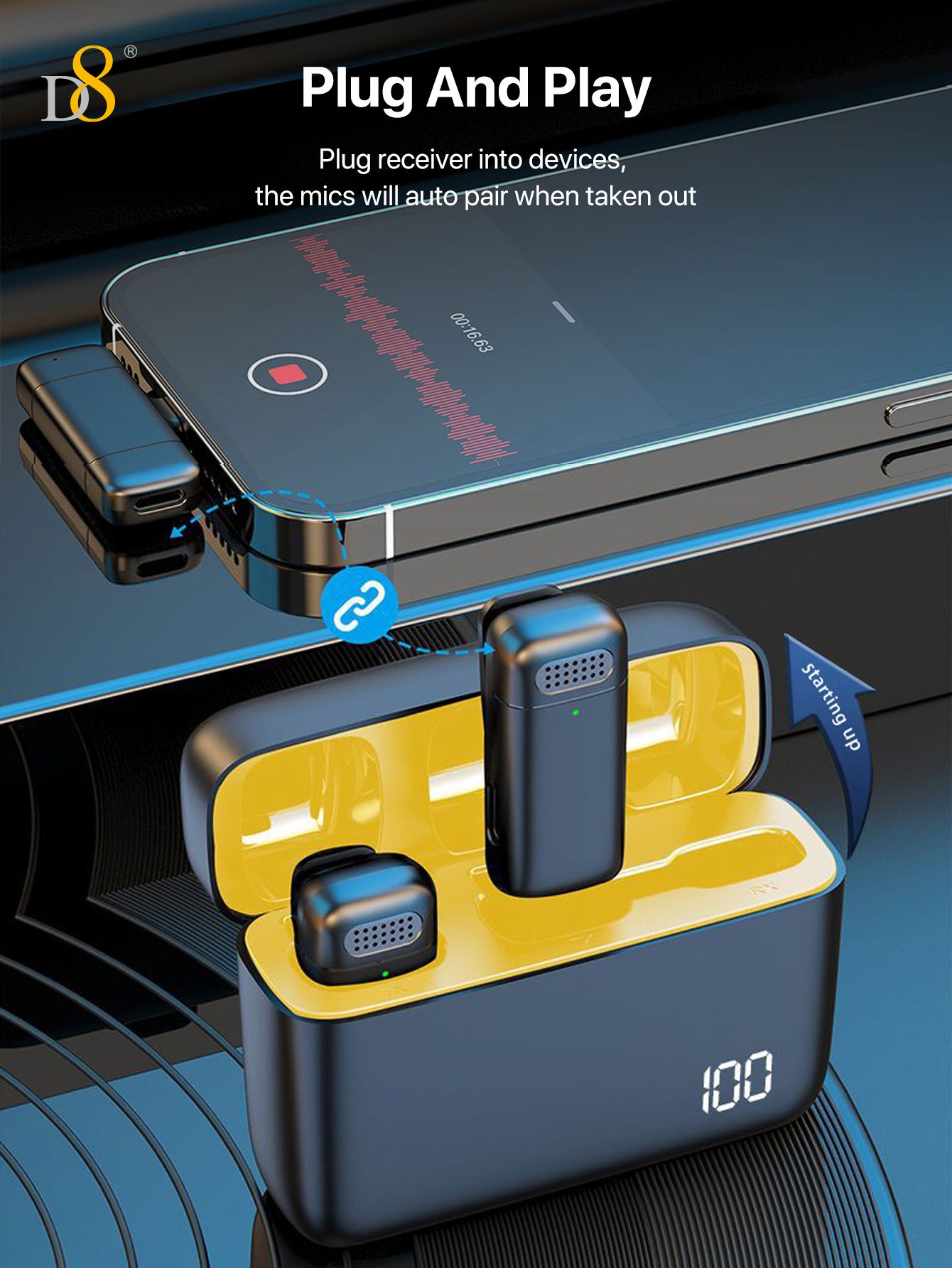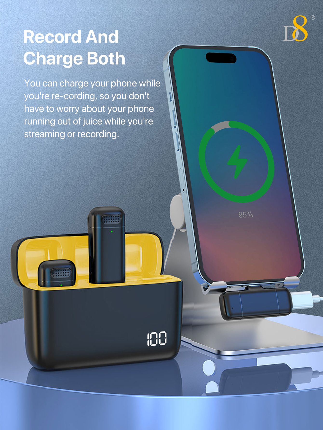 Wireless Lavalier Microphone Set (70H Battery with Charging Case, DSP Noise Reduction, Plug & Play, Compatible with iPhone 16, Black & Yellow)