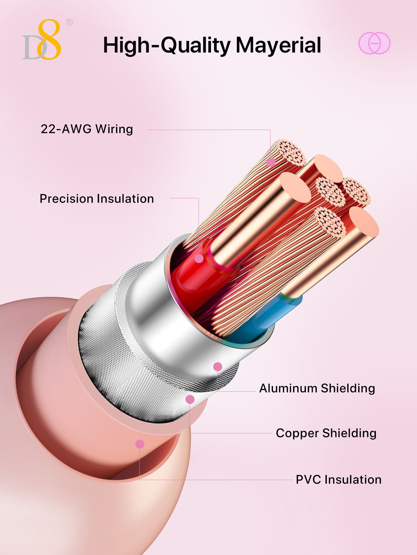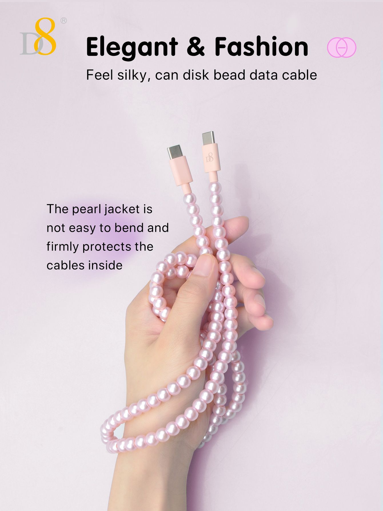 MFi Certified 2.4A Fast Charging USB-A to Lightning Cable (Fashion Pearl Chain Design, Fully Compatible with iOS, Pink)