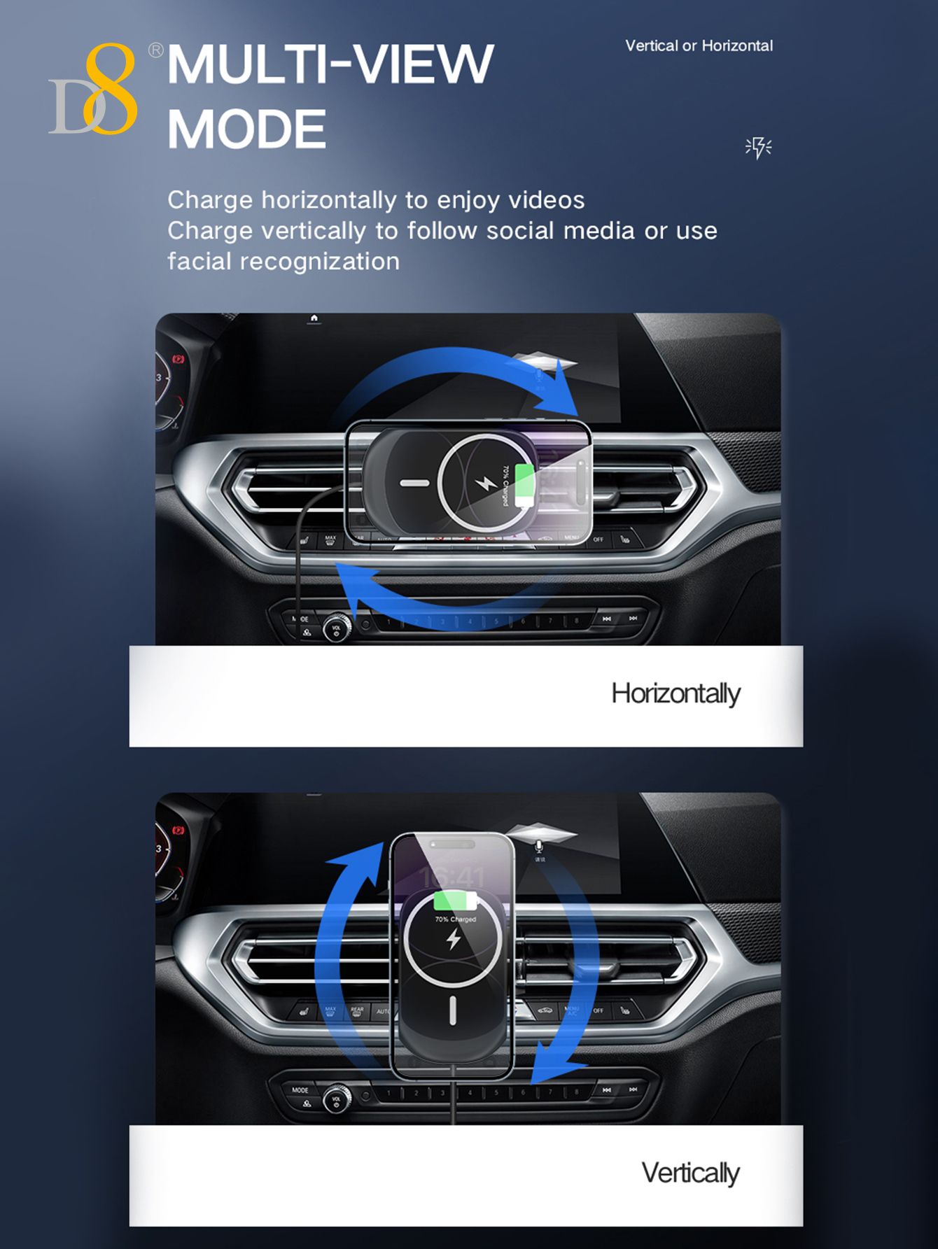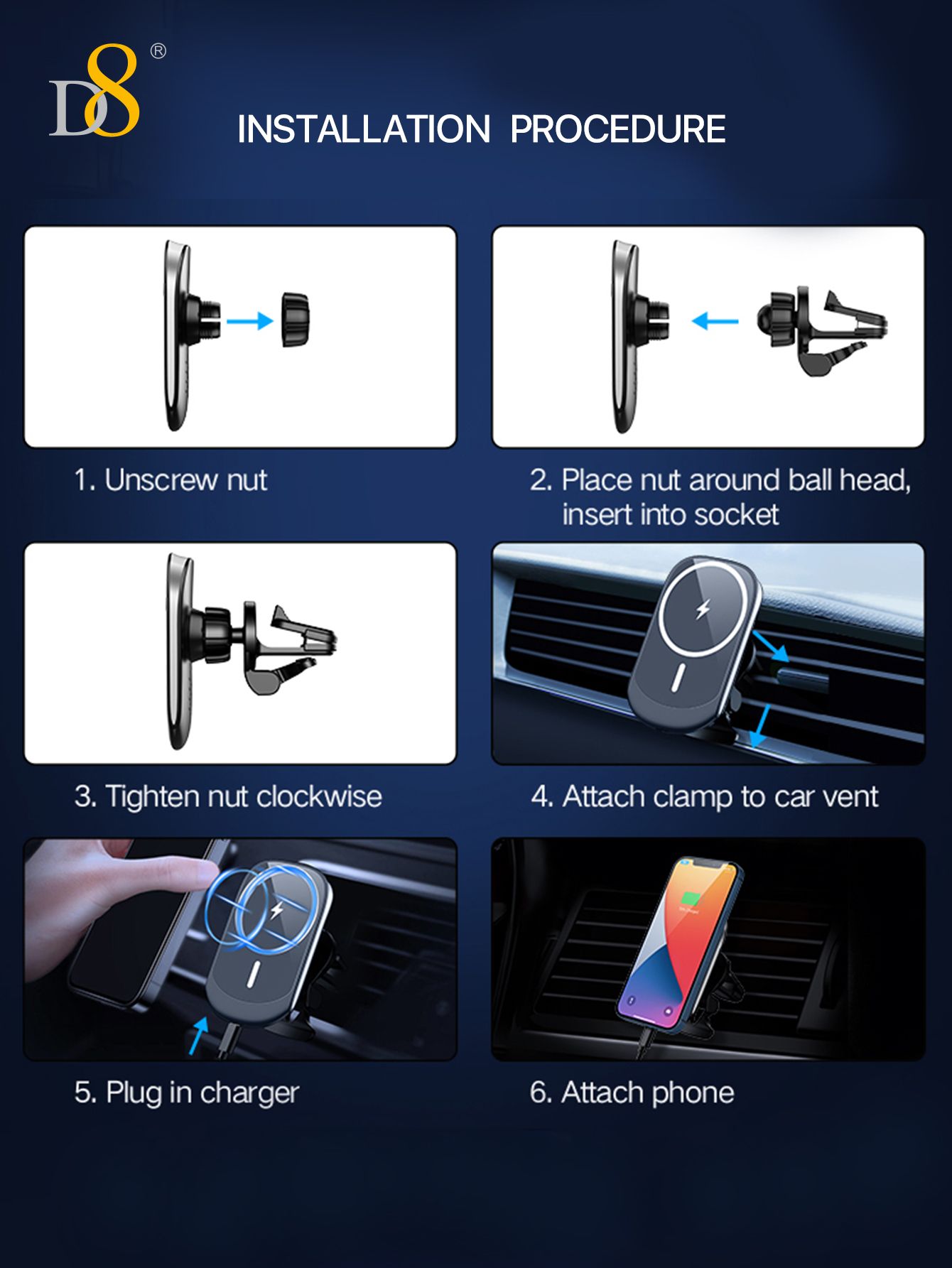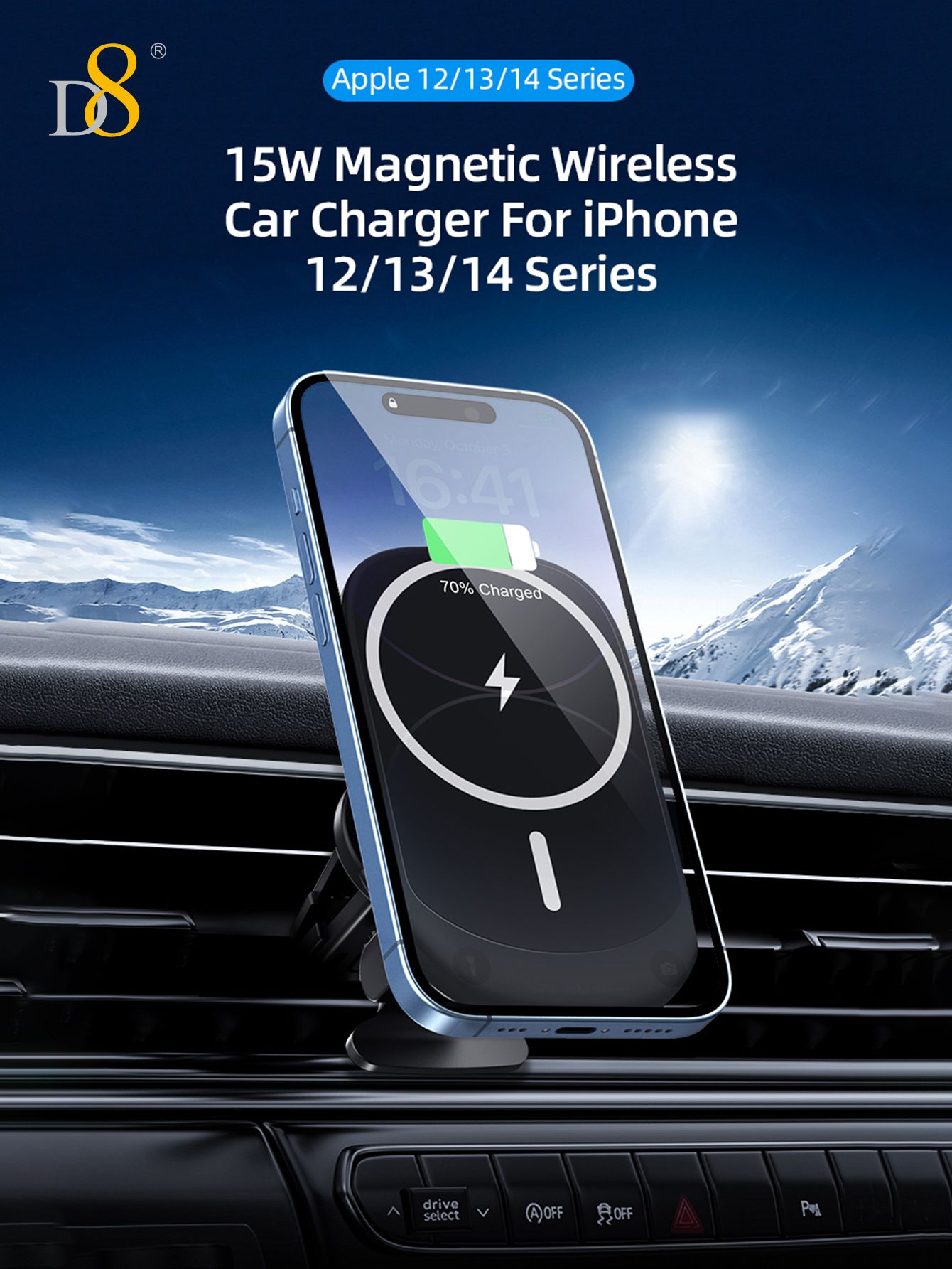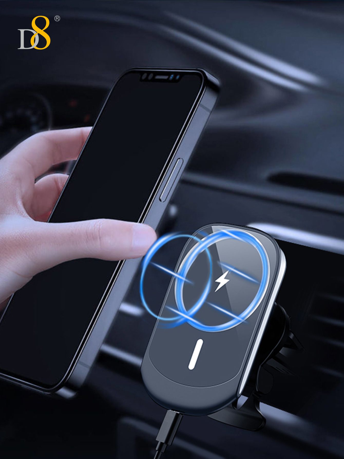 15W Magnetic Wireless Car Charger Mount (Tail Clip Design, Compatible with iPhone 15, Black)