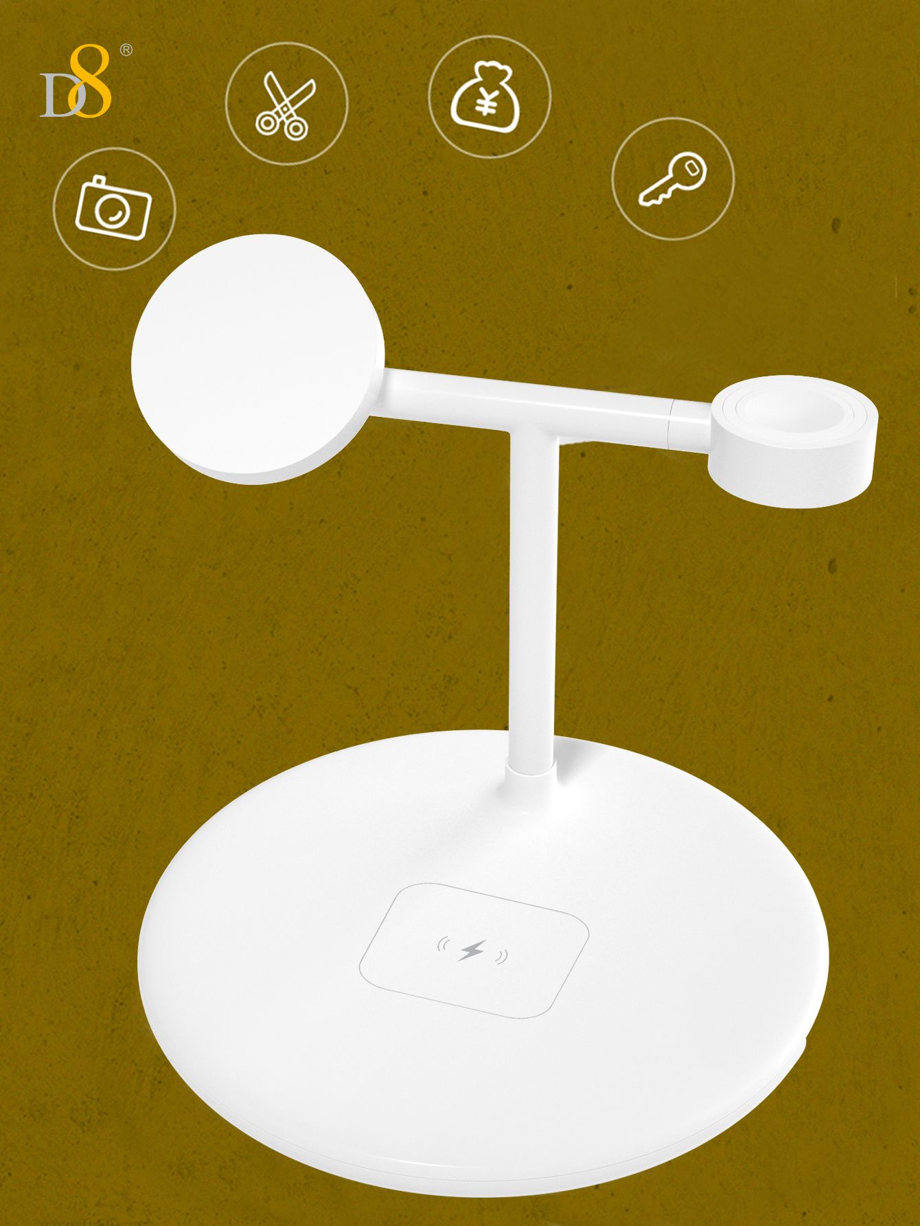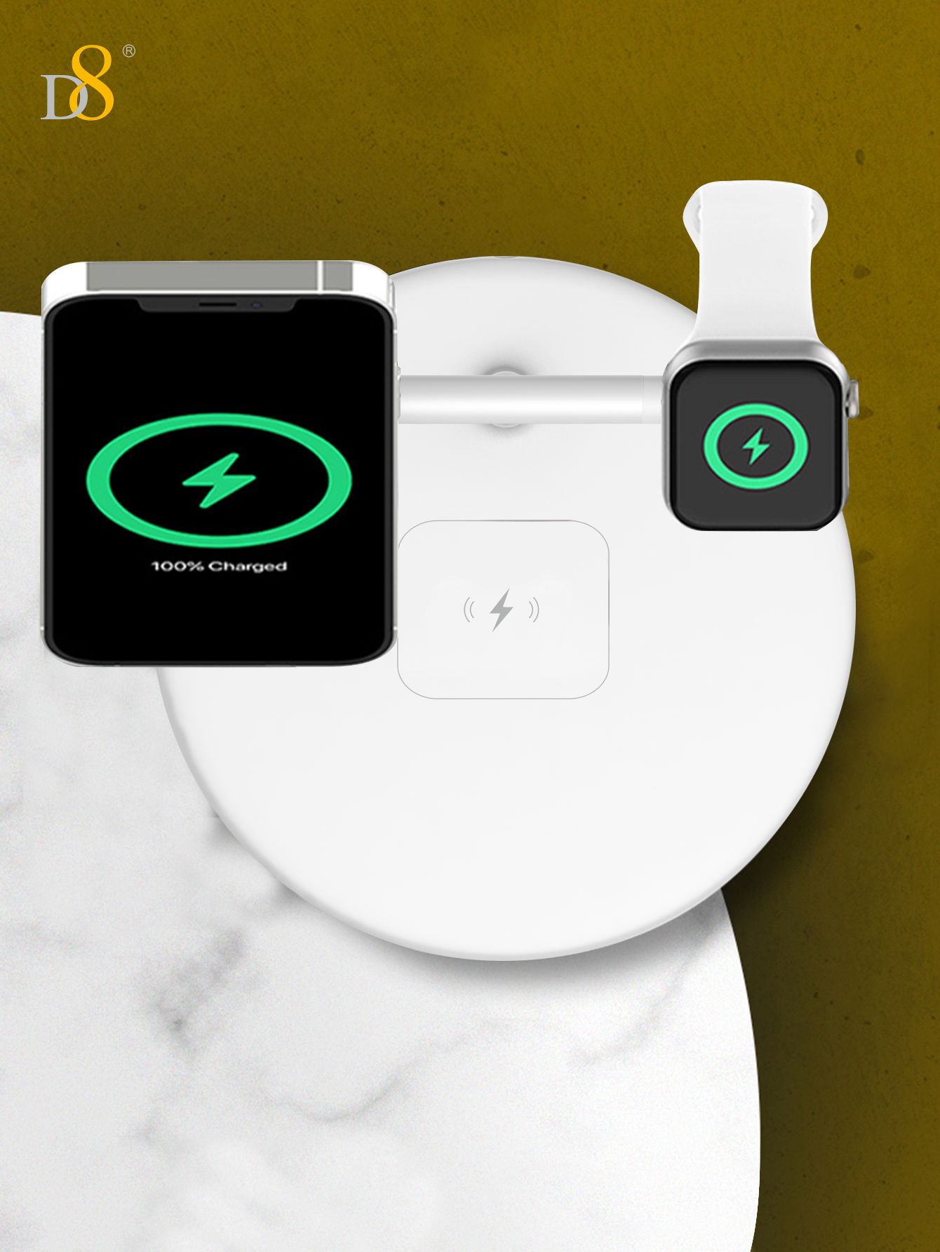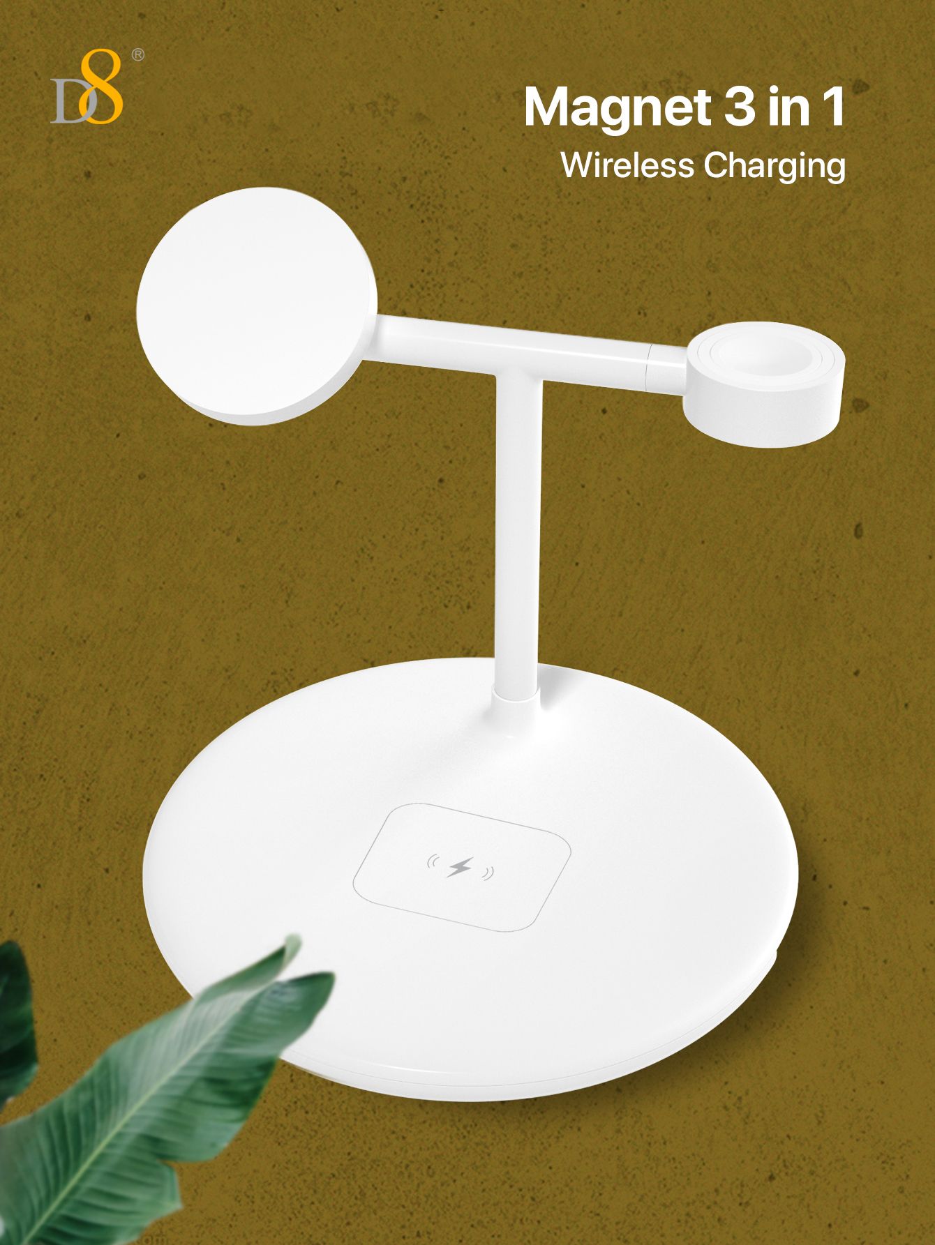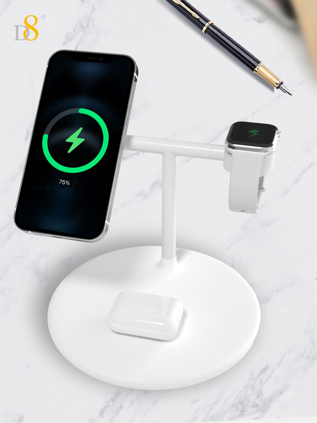 15W 3-in-1 Wireless Charger Stand (Independent Coils, Compatible with iPhone, iWatch & AirPods, White)