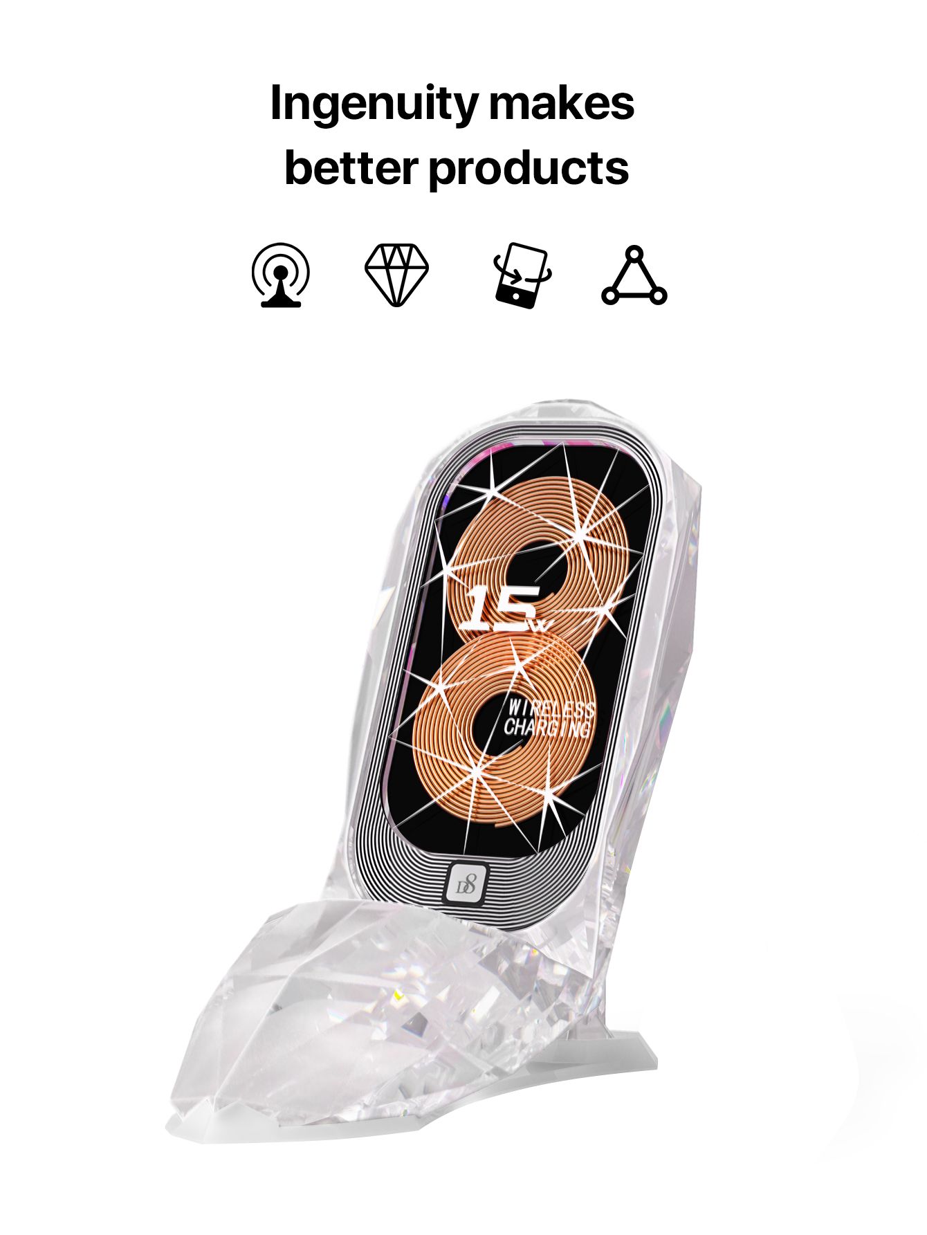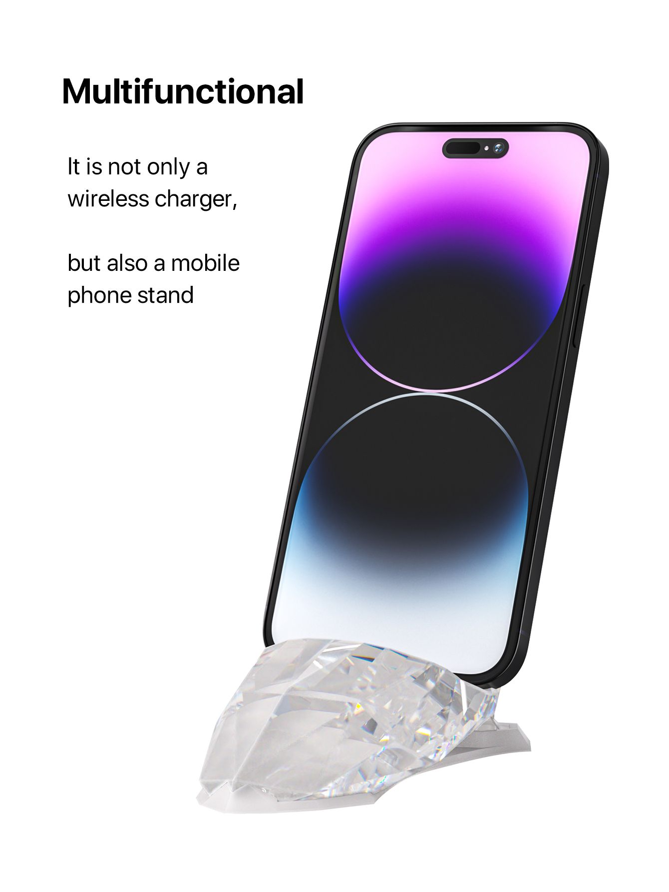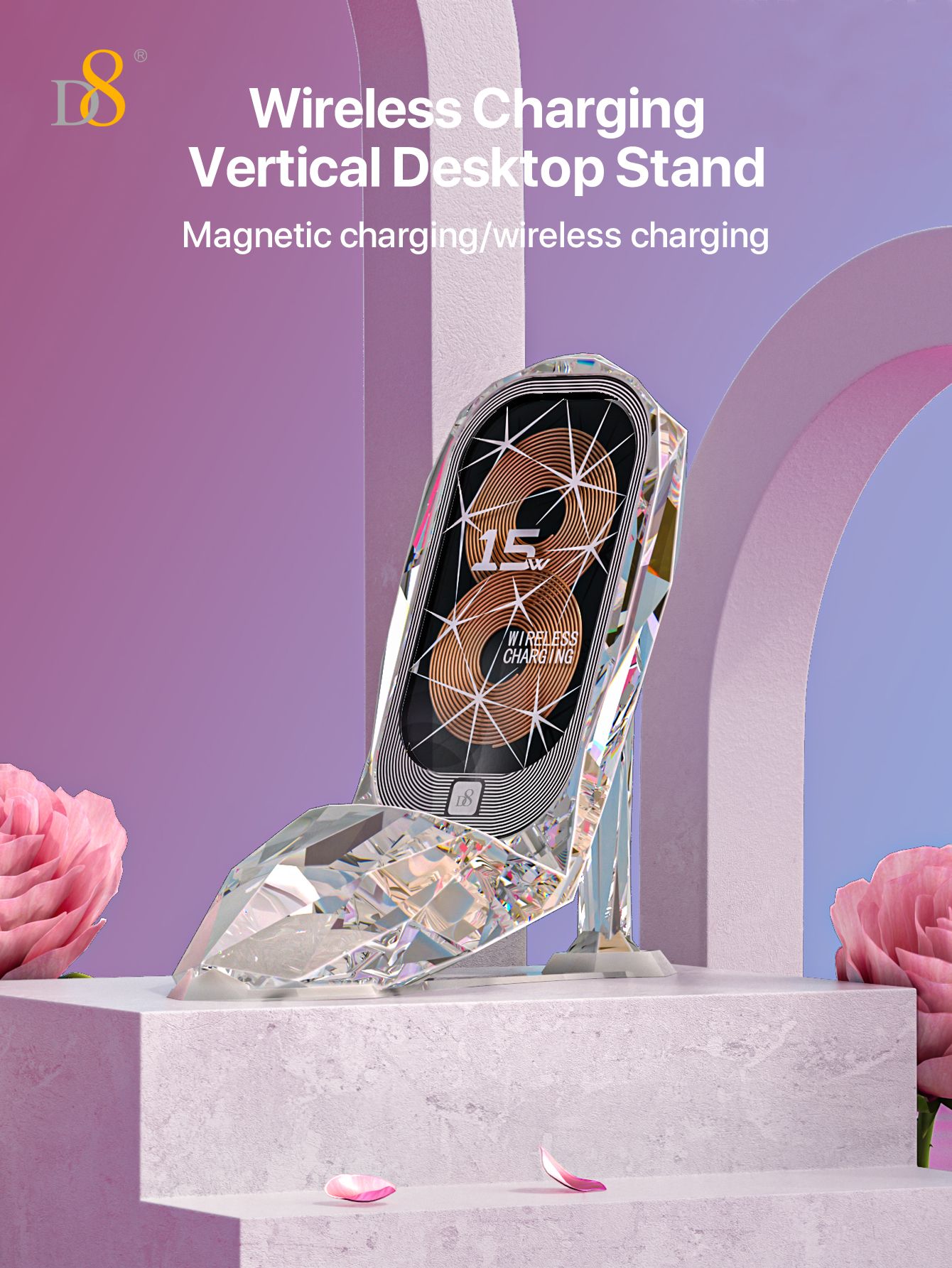 15W Diamond-Encrusted Magnetic Wireless Charger Stand (Vertical Design, Compatible with iPhone 12-16, Clear Pink)