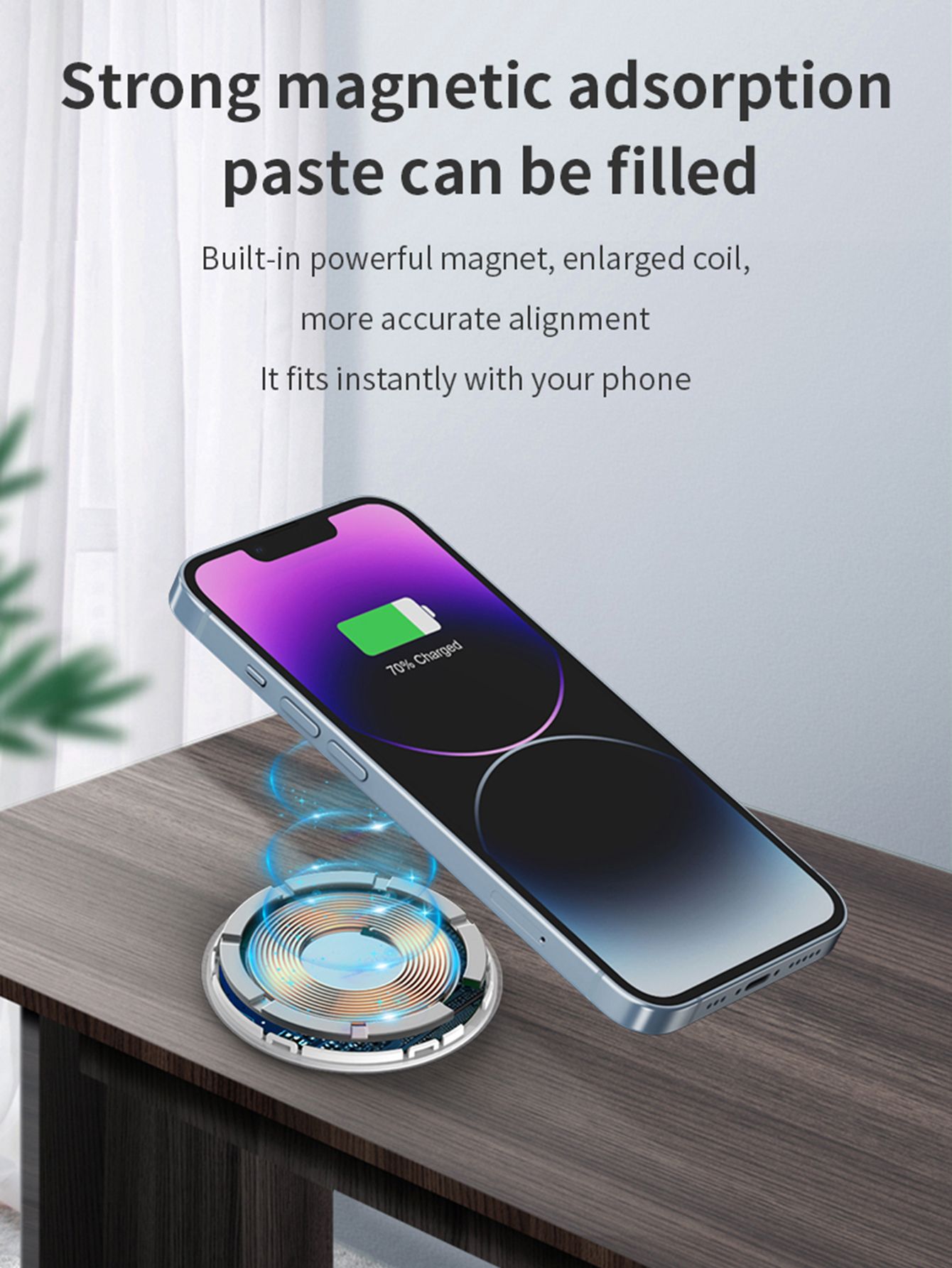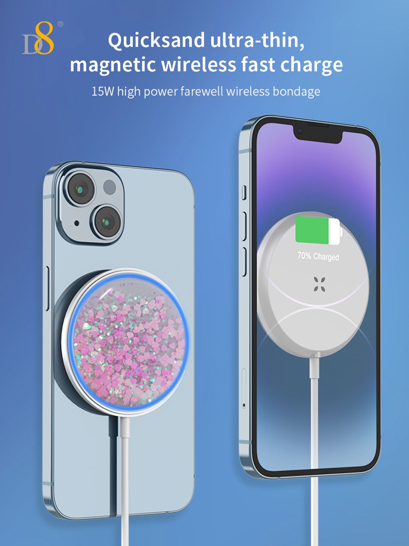 15W Magnetic Wireless Charger (360° Rotation, Glitter Design, Compatible with iPhone 12-16, Pink)
