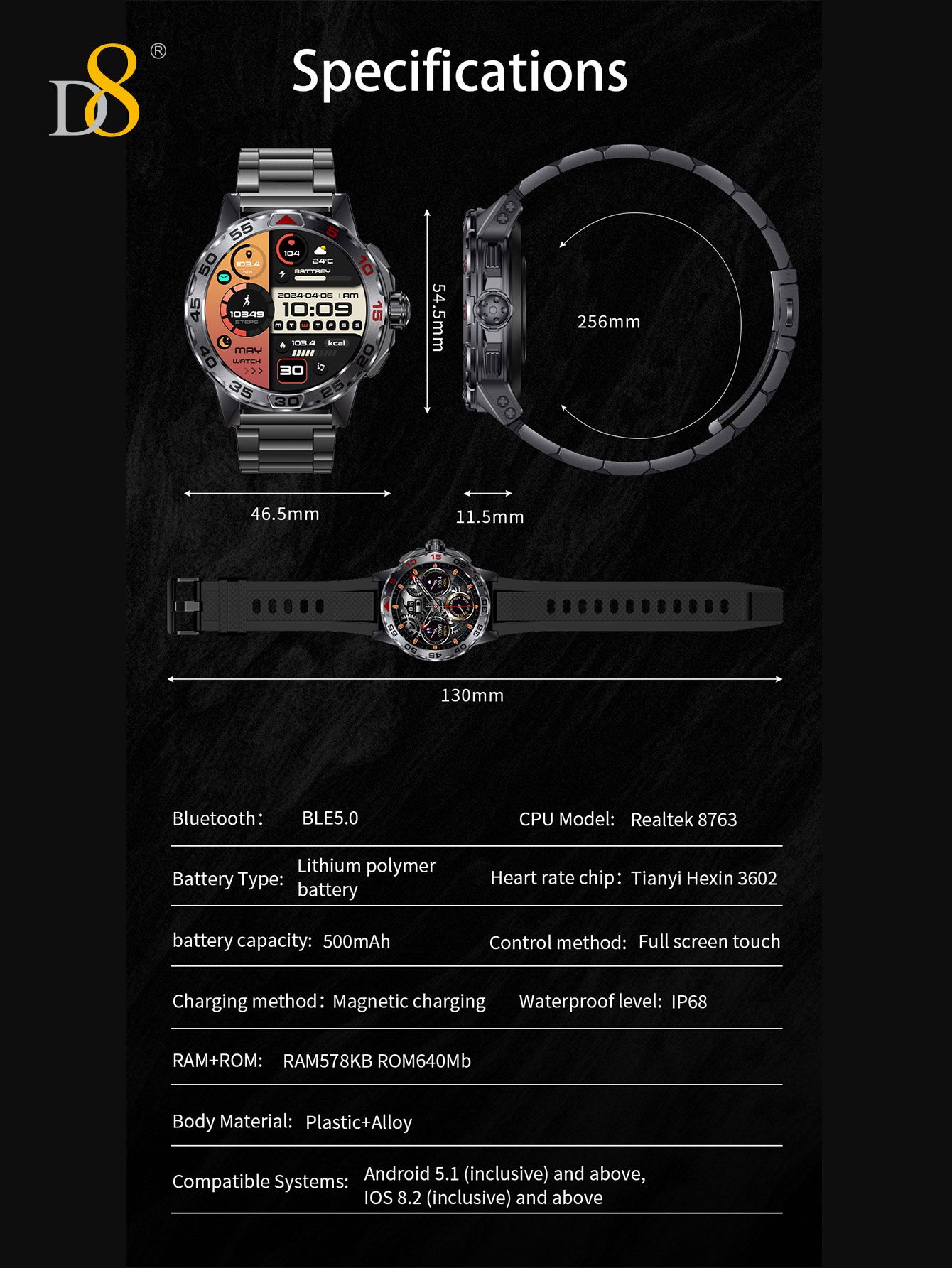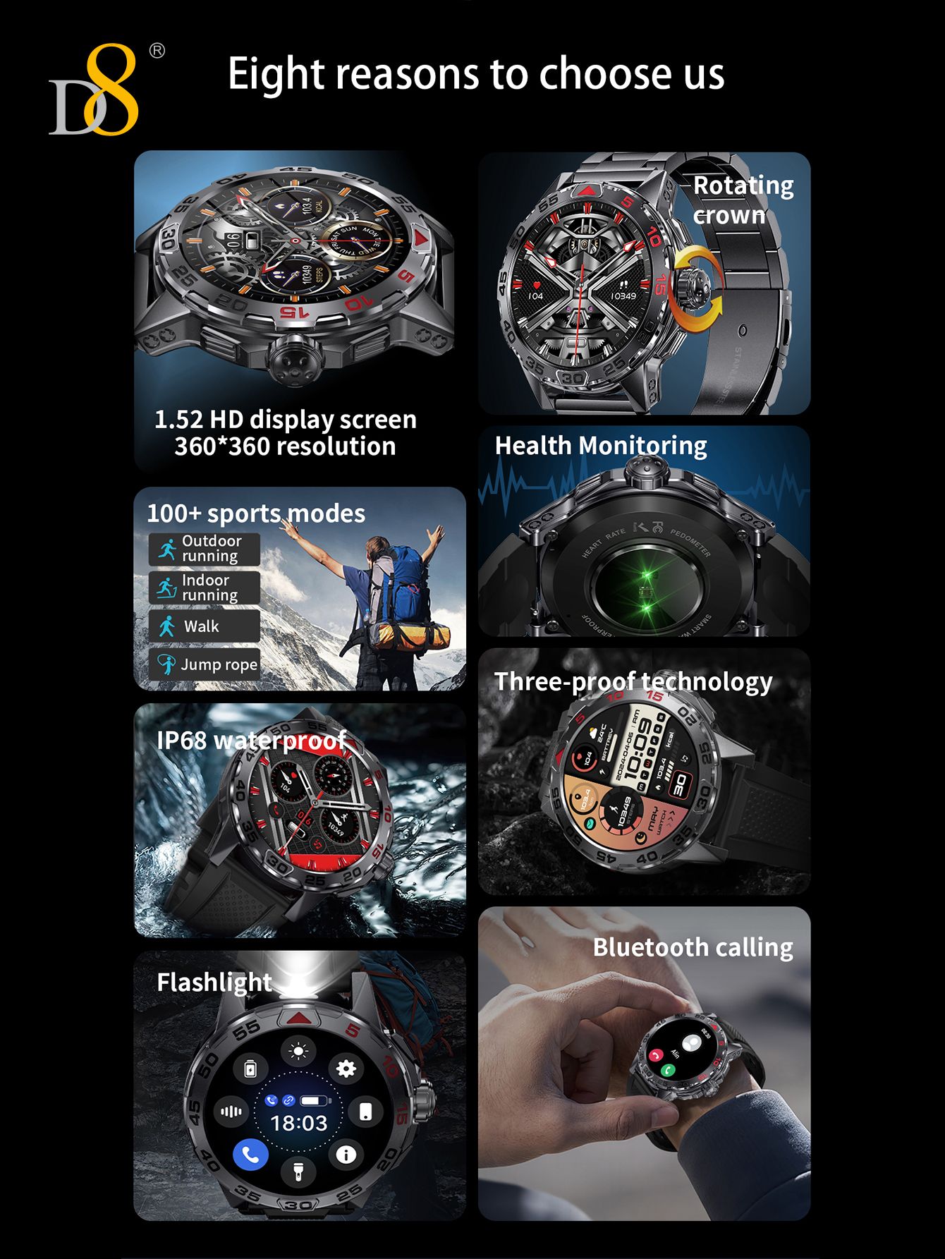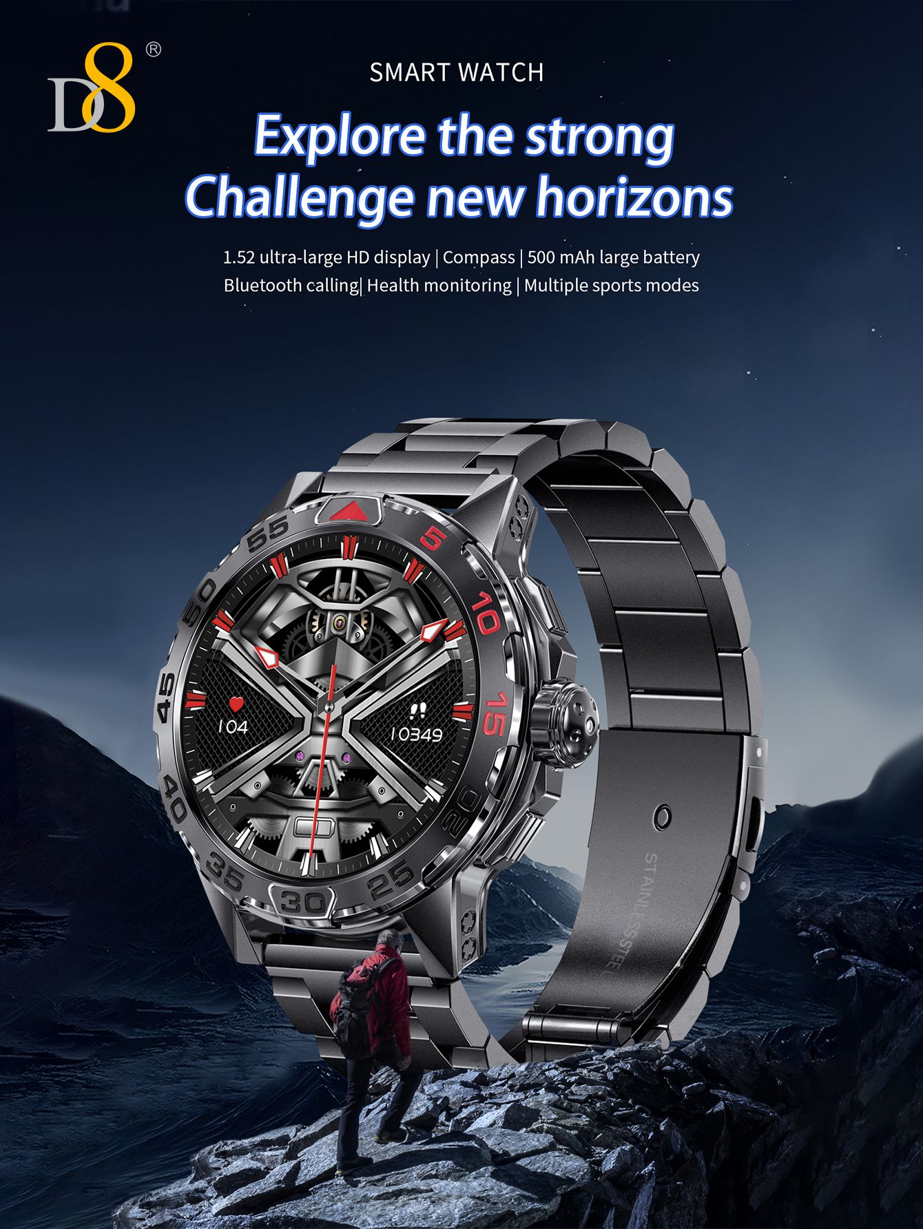 1.52" HD Large Screen 500mAh Large Battery IP68 Waterproof Smart Watch (Stainless Steel Strap, Sporty Business Style)
