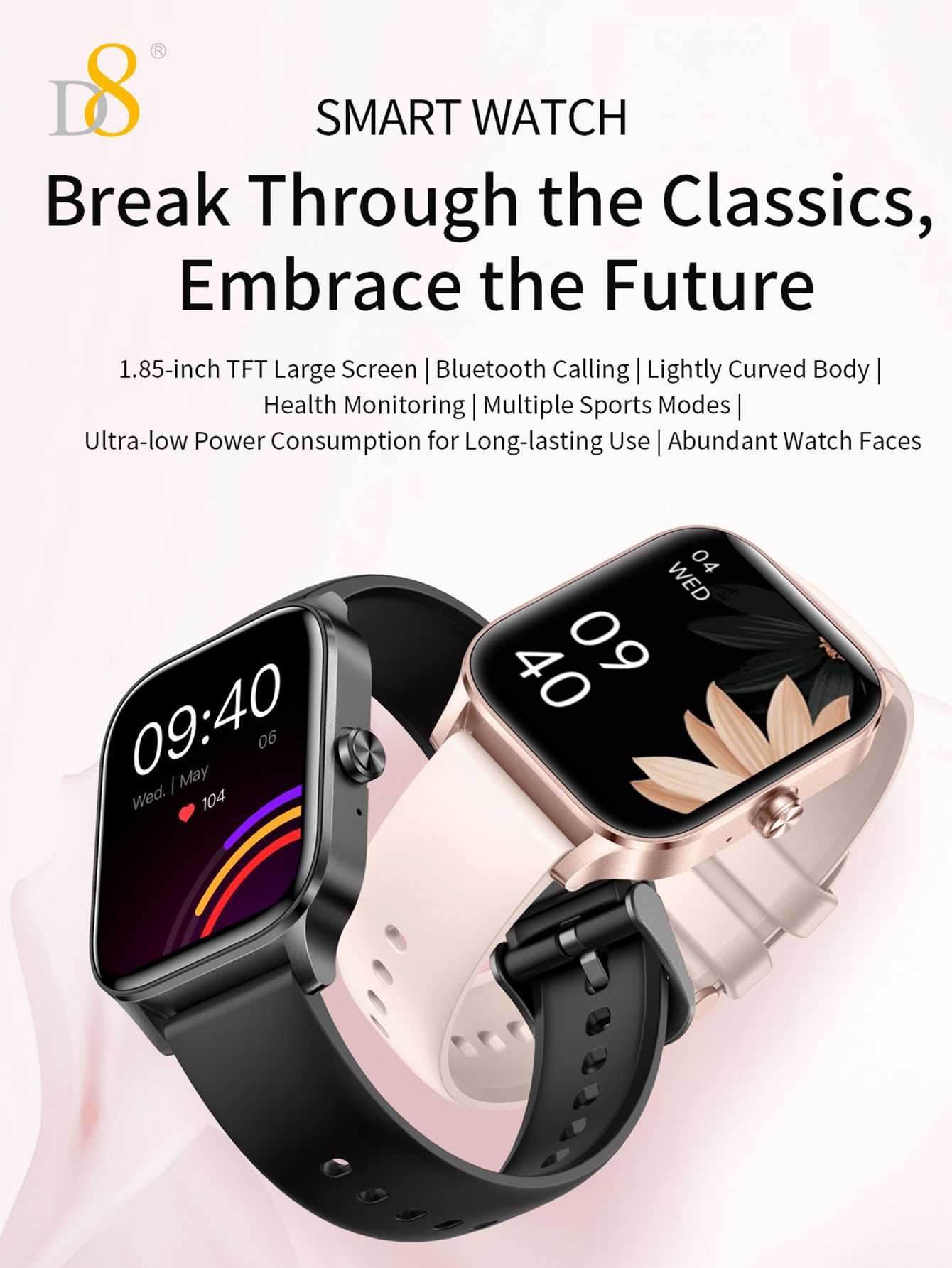 1.85" TFT Large Screen 20-day Battery Life IP68 Waterproof Smart Watch (Silicone Strap, Fashion Women's Style)