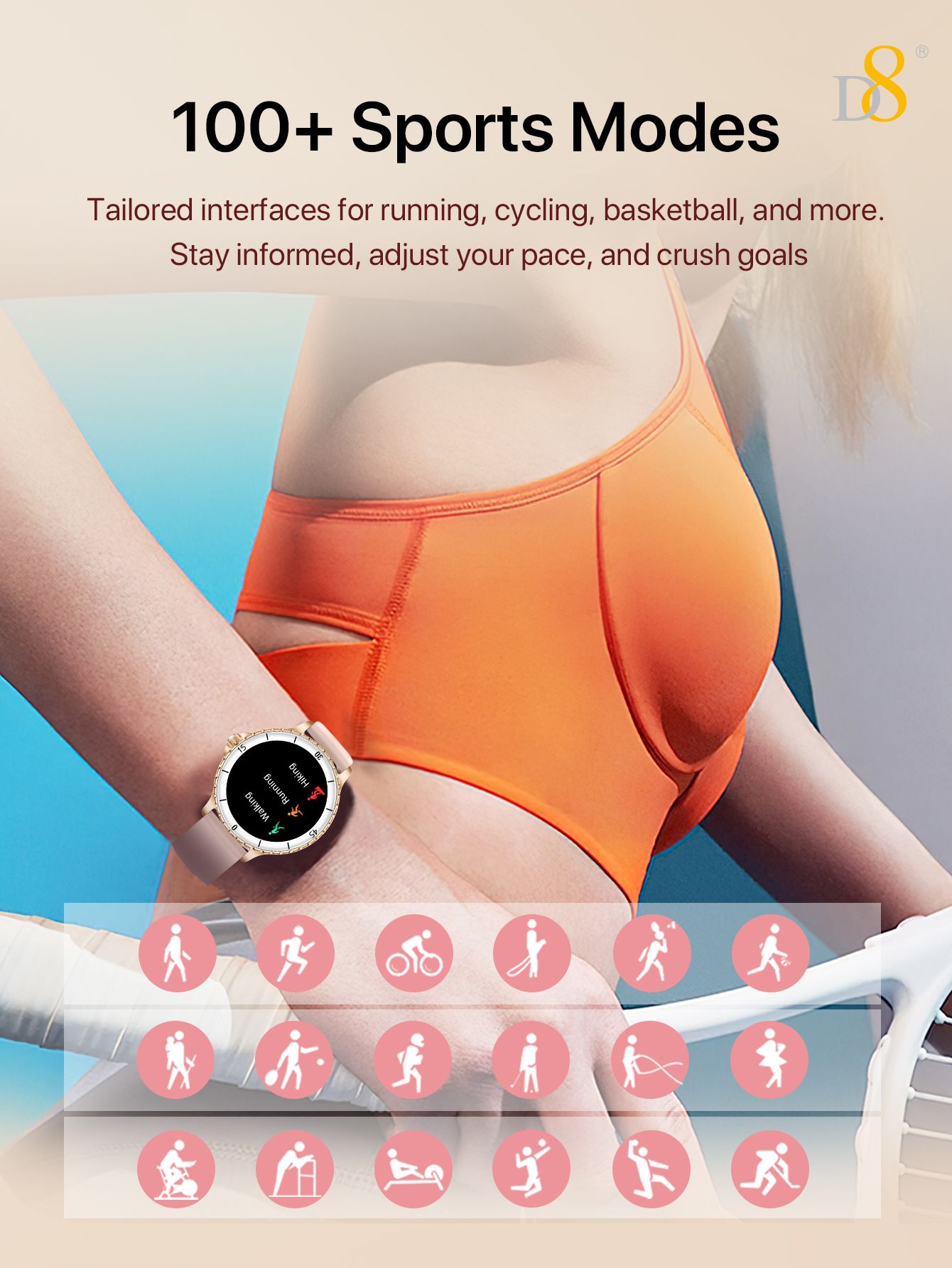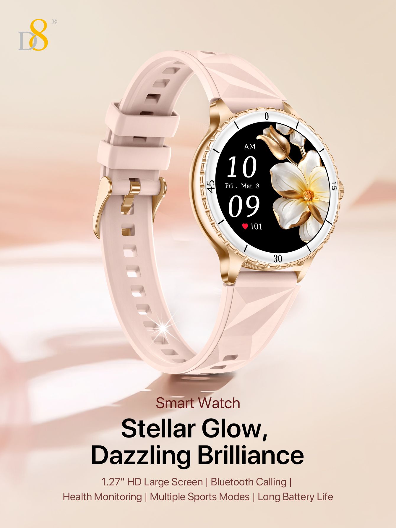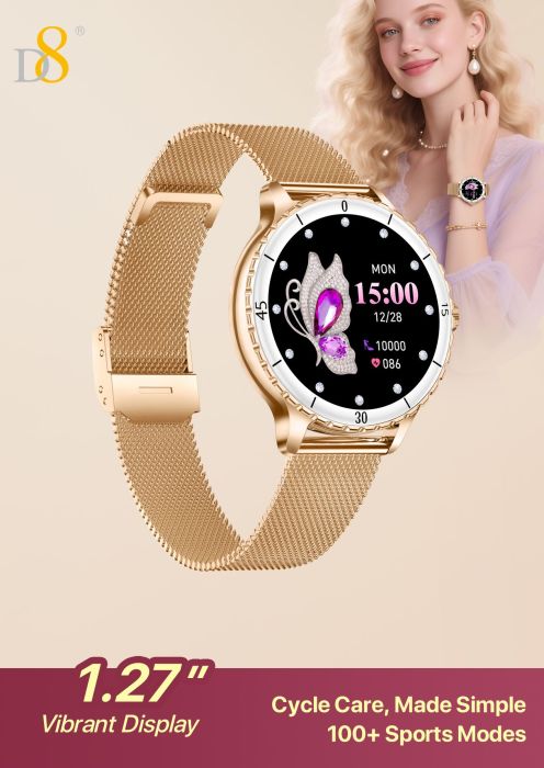 1.27" Vibrant Display Cycle Care Smart Watch (Diamond Inlay, 100+ Sports Modes, Women's Health Style)