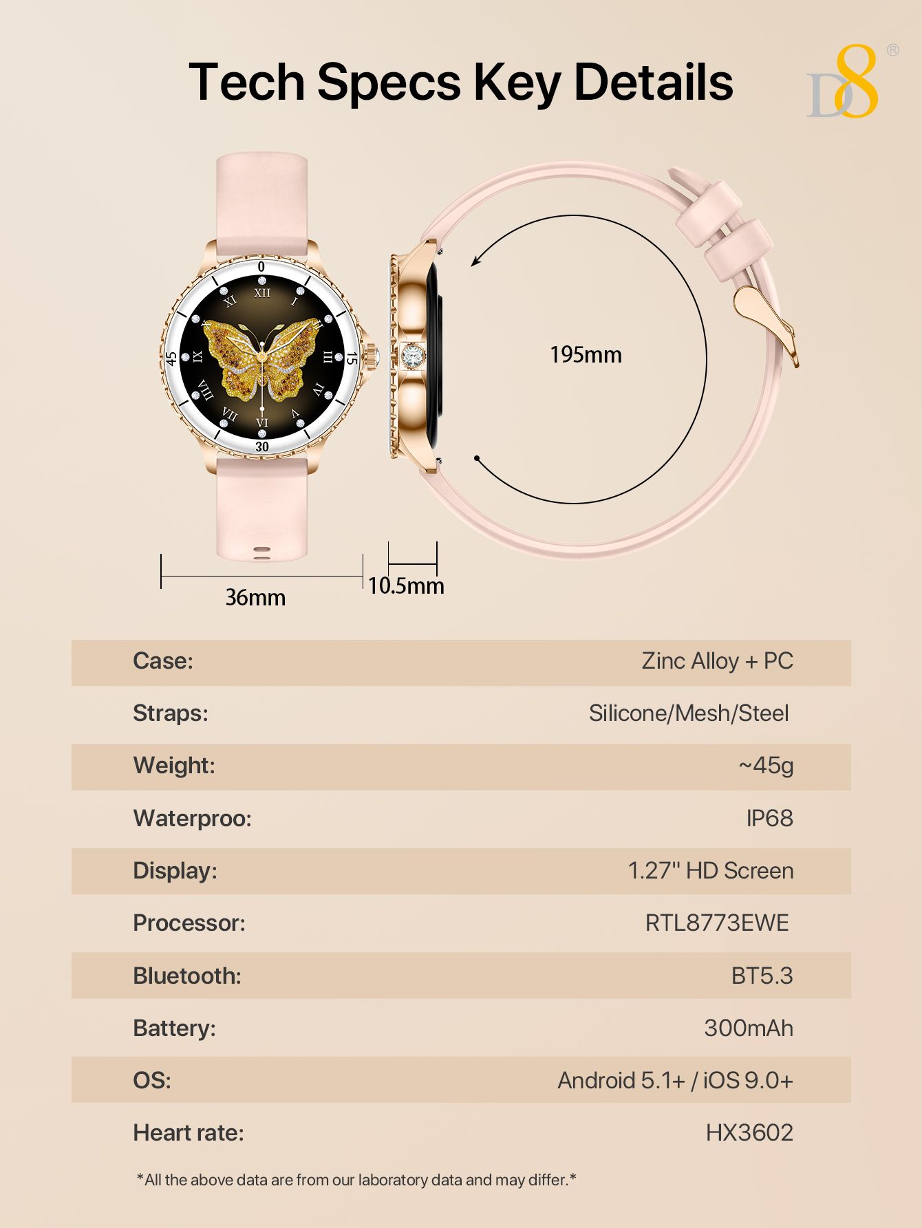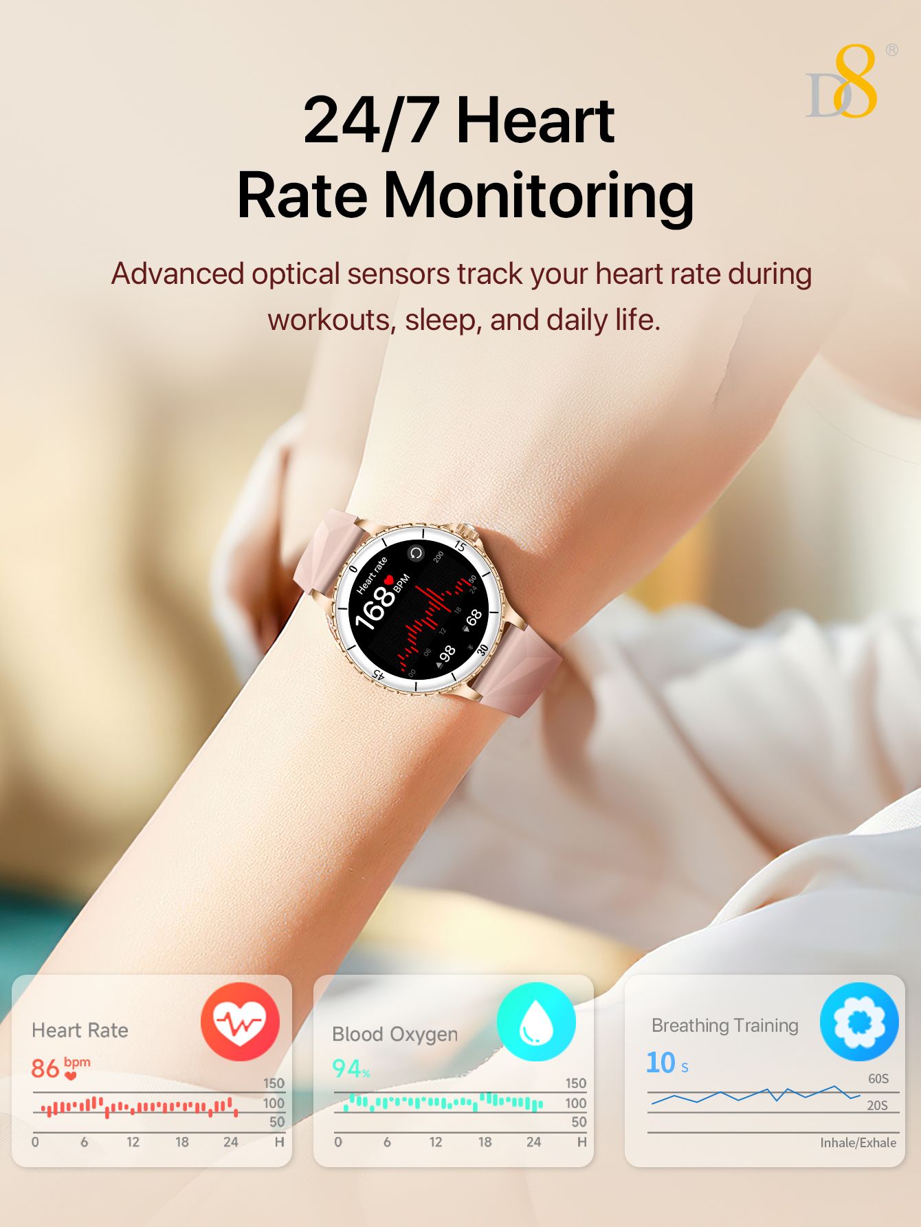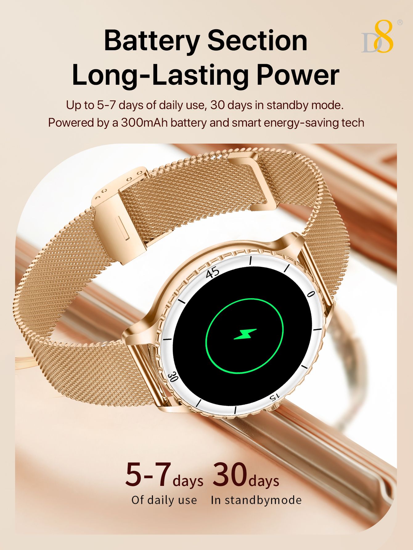 1.27" Vibrant Display Cycle Care Smart Watch (Diamond Inlay, 100+ Sports Modes, Women's Health Style)