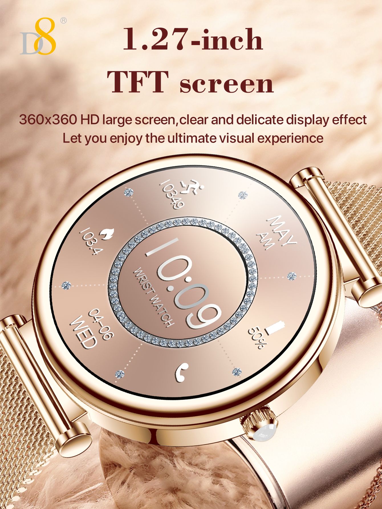 1.27" TFT Screen Elegant Smart Watch (25 Days Standby, Gold Mesh Strap)